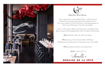 James Beard Winner Rajat Parr to Host Dinner at Four Seasons Orlando May 05, 2015 1:01 pm (Pacific) Laughing Place Disney Newsdesk