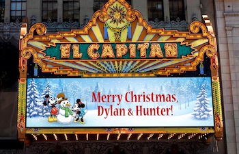 El Capitan Theatre Expands Marquee Messages Program with Winter and Holiday Scenes Dec 04, 2020 2:00 pm (Pacific) Laughing Place Disney Newsdesk