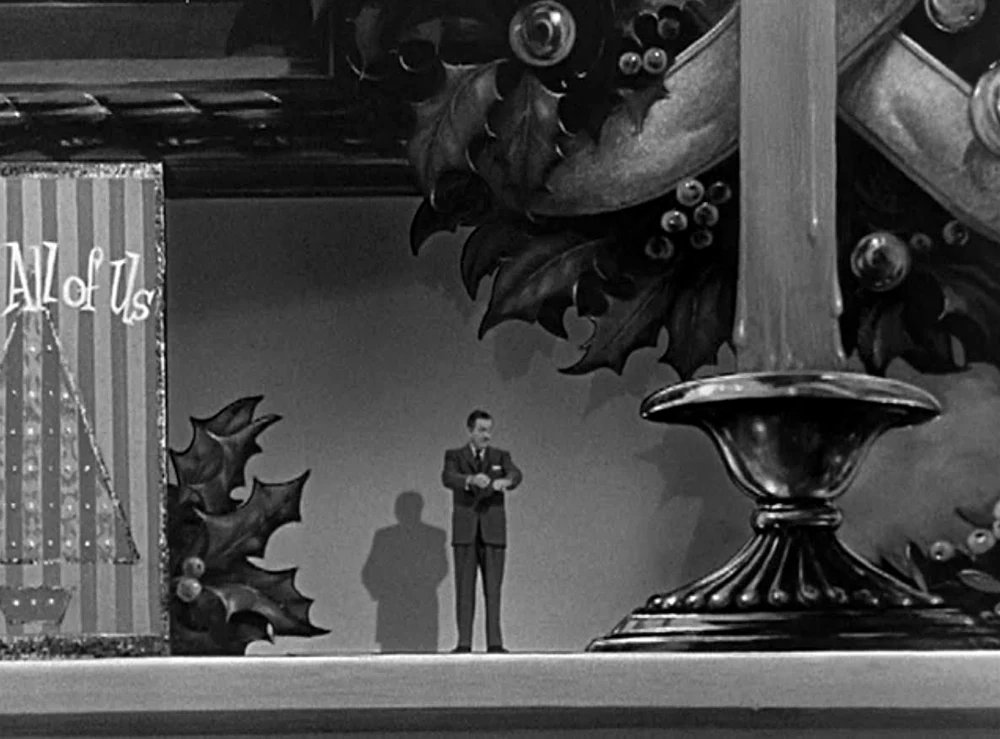 As a significant investor in Disneyland park, ABC became the home of Disney’s first anthology series, Disneyland, in the fall of 1954. Walt Disney had success on television twice before with Christmas specials on NBC in 1950 (“One Hour in Wonderland”) and CBS in 1951 (“The Walt Disney Christmas Show”), both of which helped form a blueprint for what would become Disney’s weekend anthology tradition for decades. The first Christmas episode of Disneyland aired on ABC on December 22nd, 1954, titled “A Present for Donald.” This one-hour TV edit of The Three Caballeros shifted the film’s intro to be about Donald receiving Christmas presents (instead of birthday presents), and the fireworks finale spelled out “Merry Christmas.” This special was rebroadcast again in 1956 and would later be shown in color on later iterations of the Disney anthology series on other networks.
