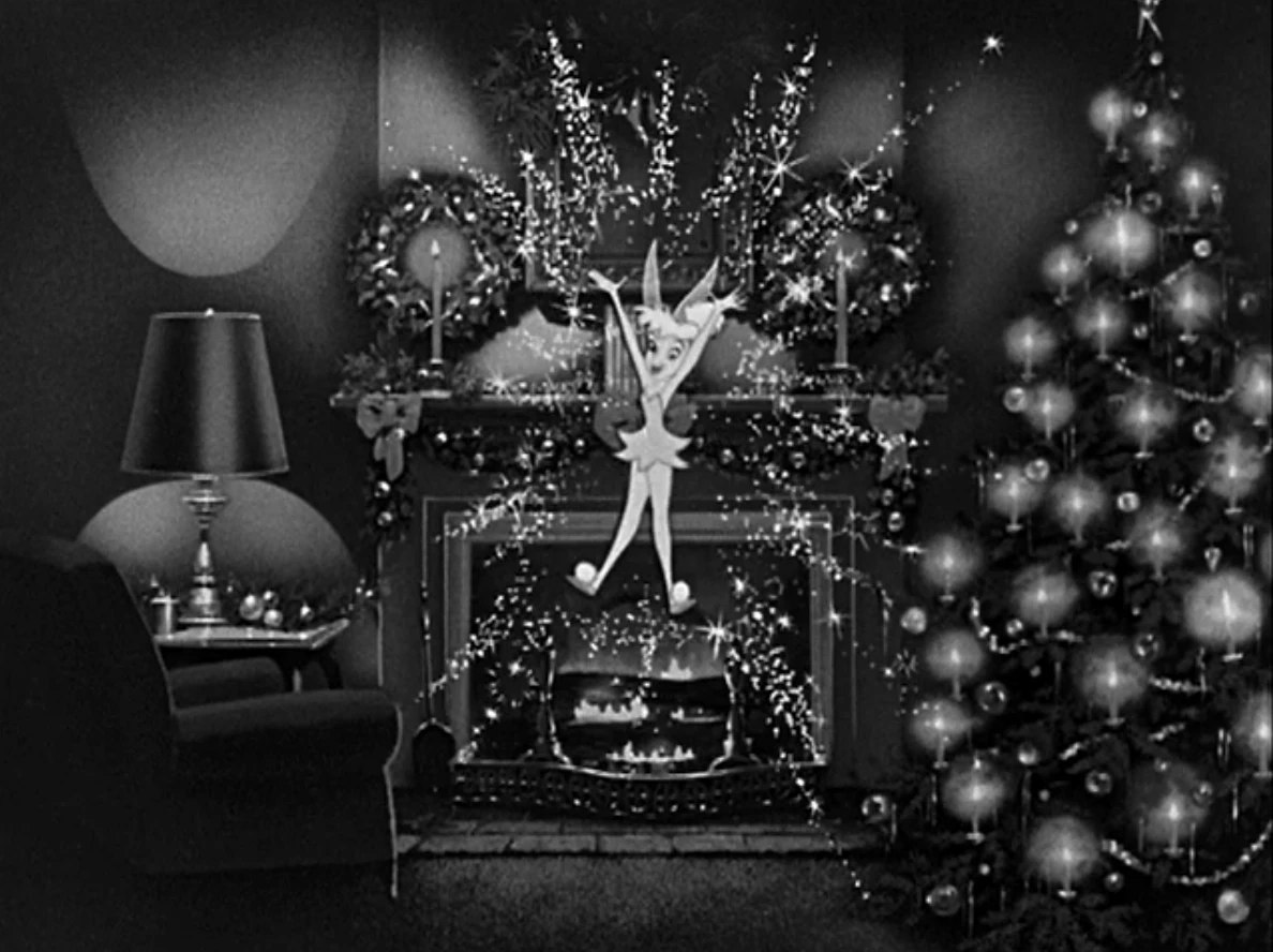 The most famous holiday special of the original ABC run of Disneyland was “From All of Us to All of You,” which debuted in 1958. Walt Disney, shrunk to the size of a mouse, introduced the original special, with a bit of help from Tinker Bell, and Jiminy Cricket served as the master of ceremonies. Disney characters sent him holiday cards that would introduce clips from animated films, which were rarely shown on television, including Snow White and the Seven Dwarfs, Pinocchio, Bambi, Cinderella, Peter Pan, and Lady and the Tramp. The hour-long special also included the shorts “Santa’s Workshop” (1932) and “Toy Tinkers” (1949). It ended with Jiminy Cricket singing “When You Wish Upon a Star” by a holiday candle to other Disney characters, which is why that song has become a holiday tradition for many families.