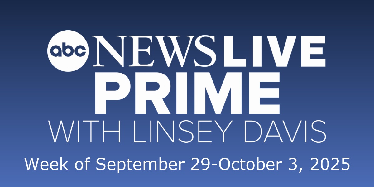ABC News Live Prime with Linsey Davis Guests for the Week of September 29-October 3:
