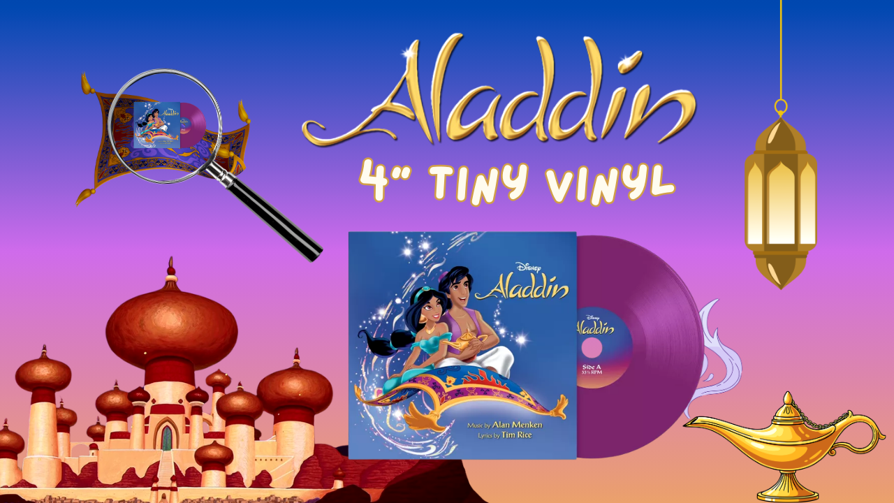 - Featuring two iconic tracks from Disney’s Aladdin, this miniature record proves that big magic can come in very small packages.