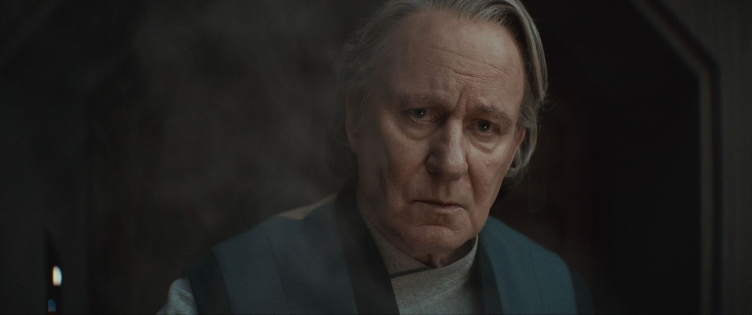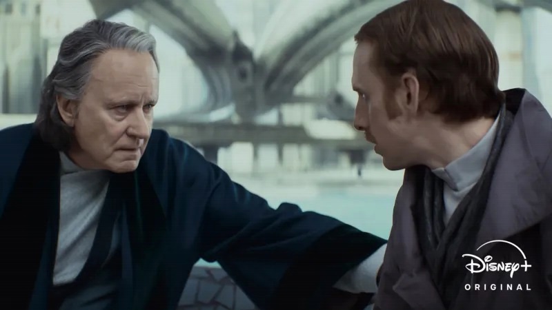Young Kleya catches up to Luthen and asks when they start fighting back against the Empire. “We have," responds Luthen. “By walking away?" “All you know now is how much you hate." “You bank that– you hide that until you know what to do with it. And when I tell you to move, you move." At the hospital, adult Kleya has abandoned the wheelchair-bound alien and is sneaking further up toward Luthen’s floor. Here she encounters an unmasked trooper, who tells her to turn back, but she simply kills him with a blaster shot. Advancing to Luthen’s floor, Kleya takes out a remote device, and then we cut back to the flashback. In the past, she’s having tea with Luthen on a Naboo-like planet and learning further lessons from her guardian. “You need to accept what you’re leaving behind. You need to know you’re making a choice. I lived most of my life without ever realizing that that was a possibility." He hands her a similar remote device to the one she has in the present, and she reaches out for it but Luthen stops her and presses the button himself. An explosion erupts on a bridge in the distance, and Luthen walks Kleya through how to properly respond to it without drawing attention, and then they leave the scene. “We’ve made our choice," he concludes.