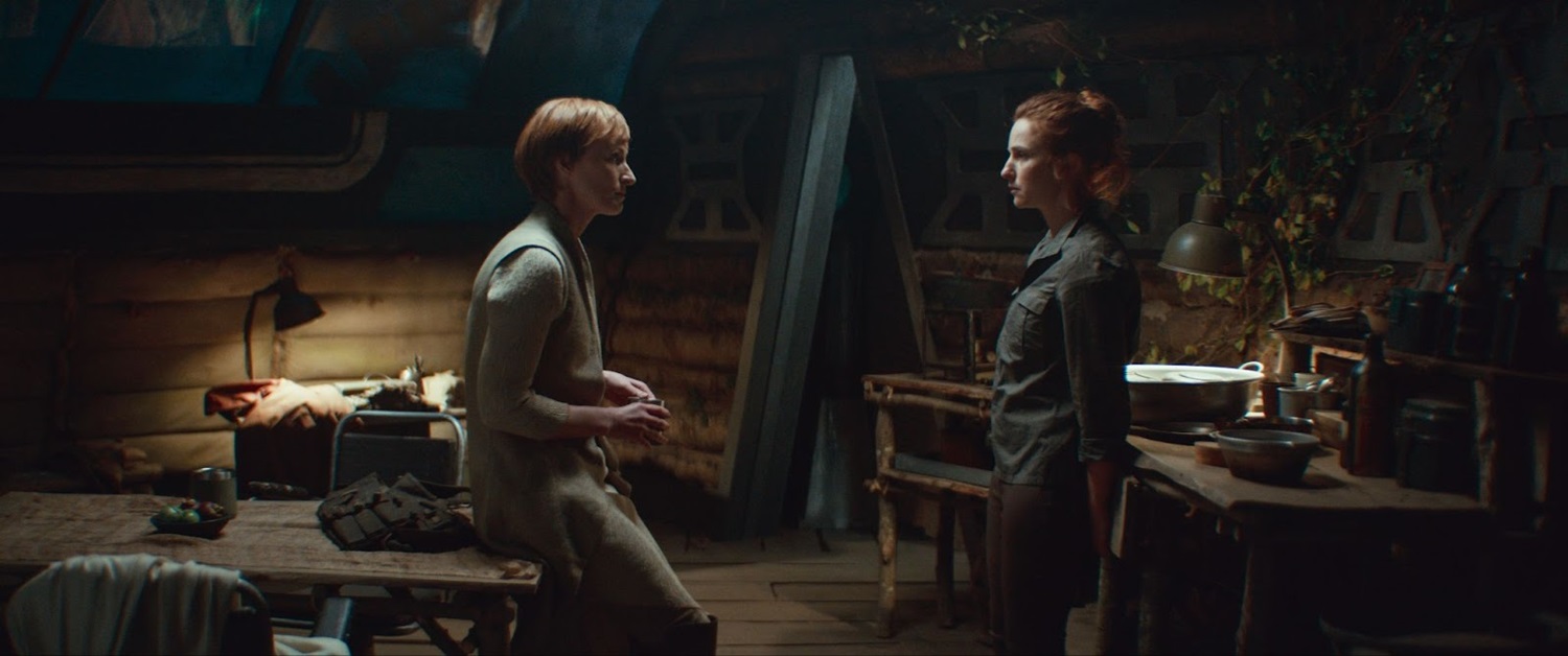 Cassian thinks to himself and then we see Vel encounter Kleya in the jungle outside. Vel gives Kleya her raincoat and brings her back inside, comforting her. In Vel’s hut, they talk about Luthen and how what she did for him couldn’t have been easy. “He always used to say, ‘Know your way out before you go in.’ I don’t even really know where I am." “I have friends everywhere," responds Vel with Luthen’s code phrase. “You’re here with friends." Vel tells Kleya to sleep and goes looking for Mon Mothma, while Draven arrives at Cassian’s hut and orders him to meet with the contact at Kafrene, telling him about the Imperial star destroyer that’s parked on Jedha. “If this is all a trap, it’s a brilliant way to spring it." “How do I get to Kafrene," asks Cassian. In the bunker, Mon Mothma tells Bail Organa that she and Draven need to be heard out. Cassian dreams about his sister and is then woken up by K-2SO, who tells him, “The man you do not like is here." Bail Organa enters the hut and asks Cassian if he ever sleeps well. “No." “Then we have something in common." Bail says, “If I die fighting the Empire, I want to go down swinging." “You and Luthen would have gotten along much better than you think," says Cassian. “May the Force be with you," replies Organa, sending Cassian off to Kafrene.