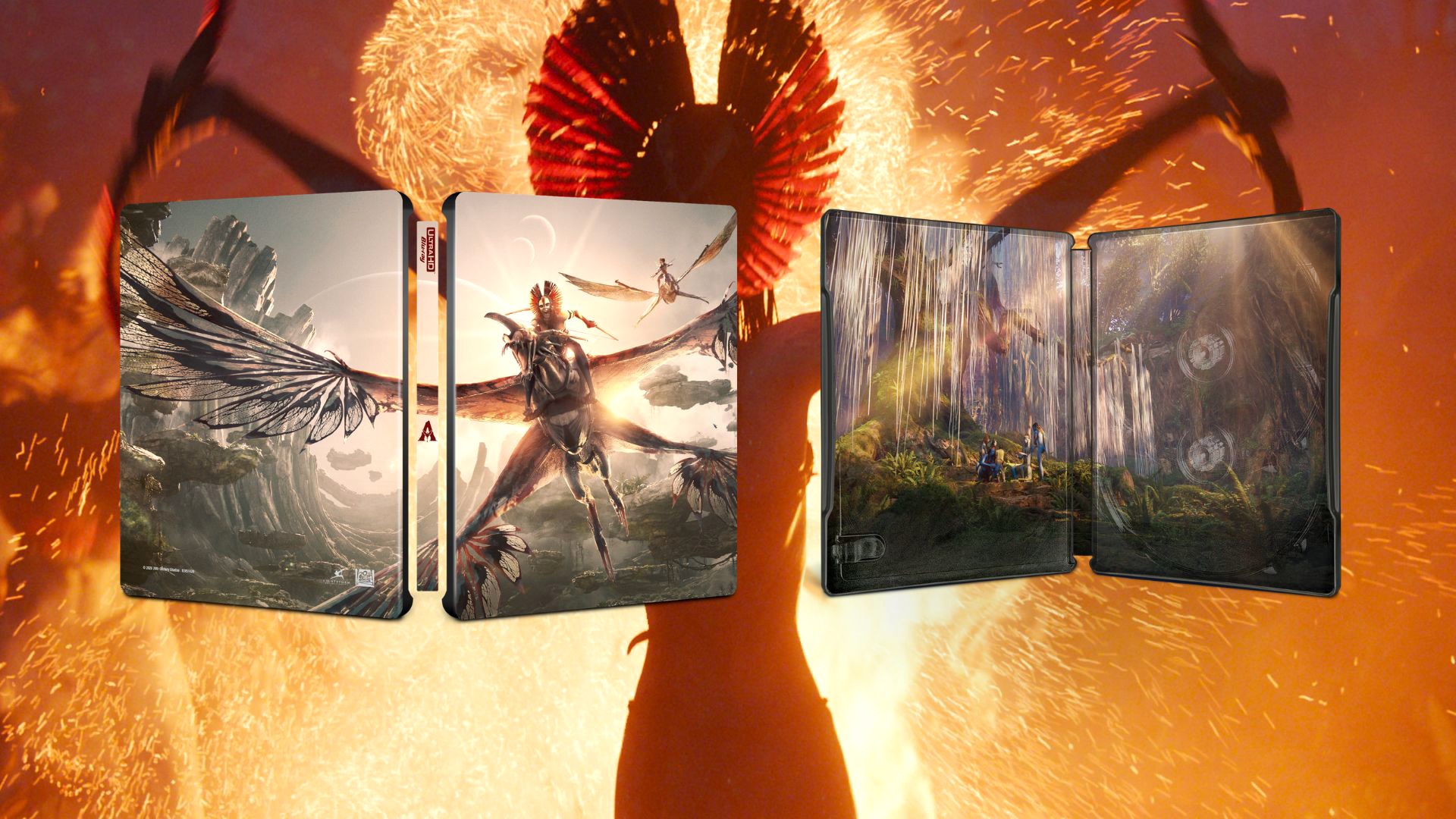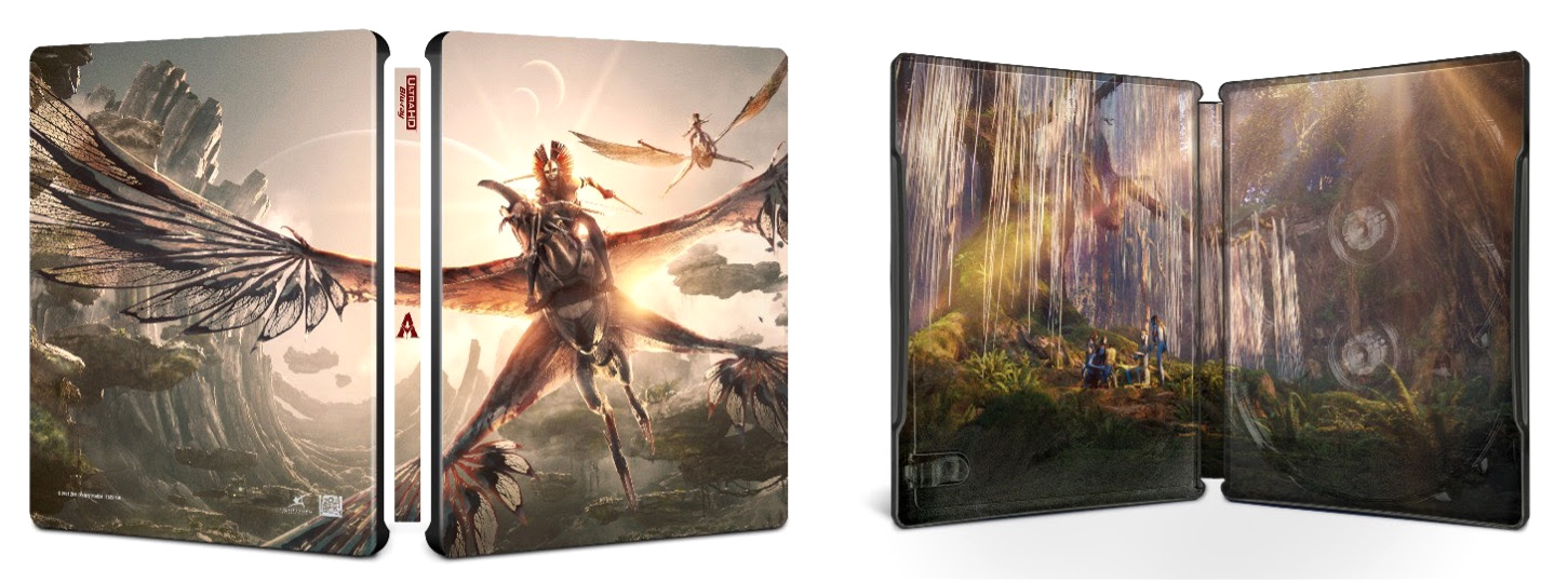 - A limited-edition 4K Ultra HD SteelBook immediately immerses collectors in the high-flying intensity of a Mangkwan attack, then reveals a striking contrast as the case opens to the serene beauty and spiritual calm of the Na’vi within Pandora’s lush rainforest, housing the film’s discs in a design that reflects both the film’s epic scale and emotional depth.