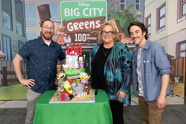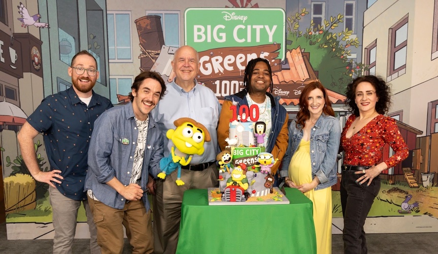 In celebration of the milestone 100th episode of Big City Greens, the cast, crew and their families gathered for a celebratory toast with a show-stopping, three-tier cake.