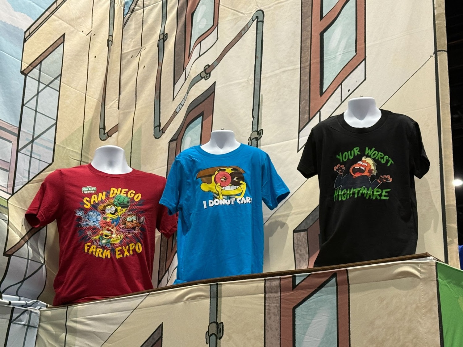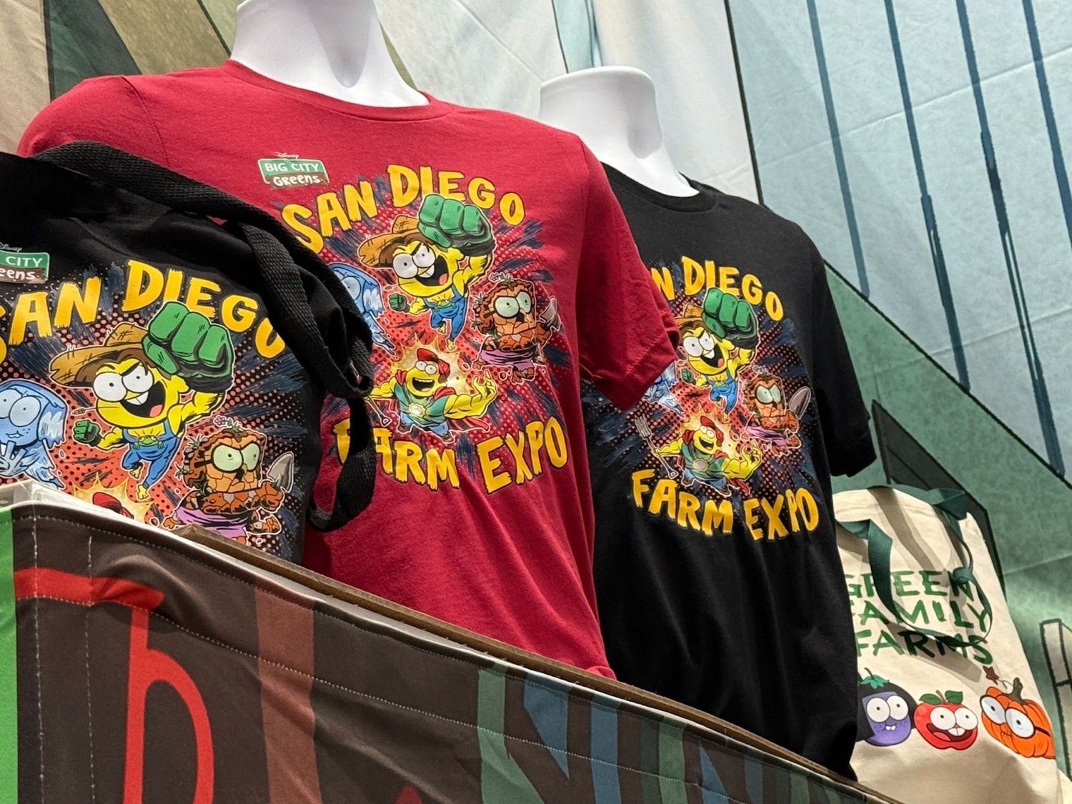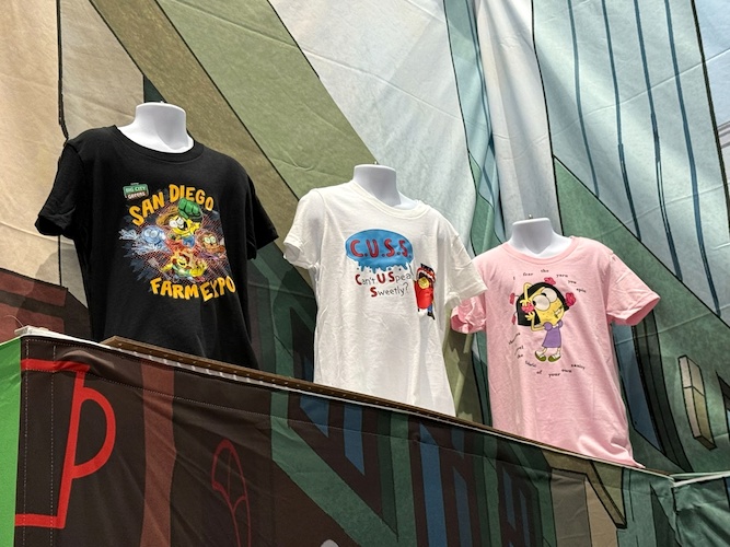 - A reference to San Diego Comic-Con itself, fans can also get their hands on garb showing off the San Diego Farm Expo, with some characters from the hit animated series dressed akin to certain superheroes that are distant company cousins.