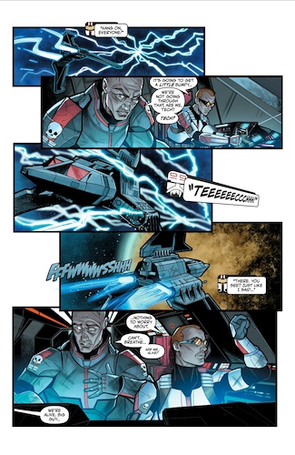 Hyperspace Stories - The Bad Batch: Ghost Agents #2 begins in the Akkadese Maelstrom in the Kessel sector, where Wrecker is nauseated by the turbulence as the Marauder careens toward its destination. Finally arriving on Kessel in pursuit of their prey, the members of Clone Force 99 peer over a canyon’s edge and spot the thief from the previous issue (it’s been more than a month and a half since that was released, so I’m struggling to remember what it was exactly that this person stole– could have used a text-crawl recap here as a reminder) talking with a representative of the Pyke syndicate. A deal is struck and the thief is permitted to board a Pyke shuttle and fly away, but not before the Bad Batch short-circuits a spice converter, causing an explosion as a distraction.