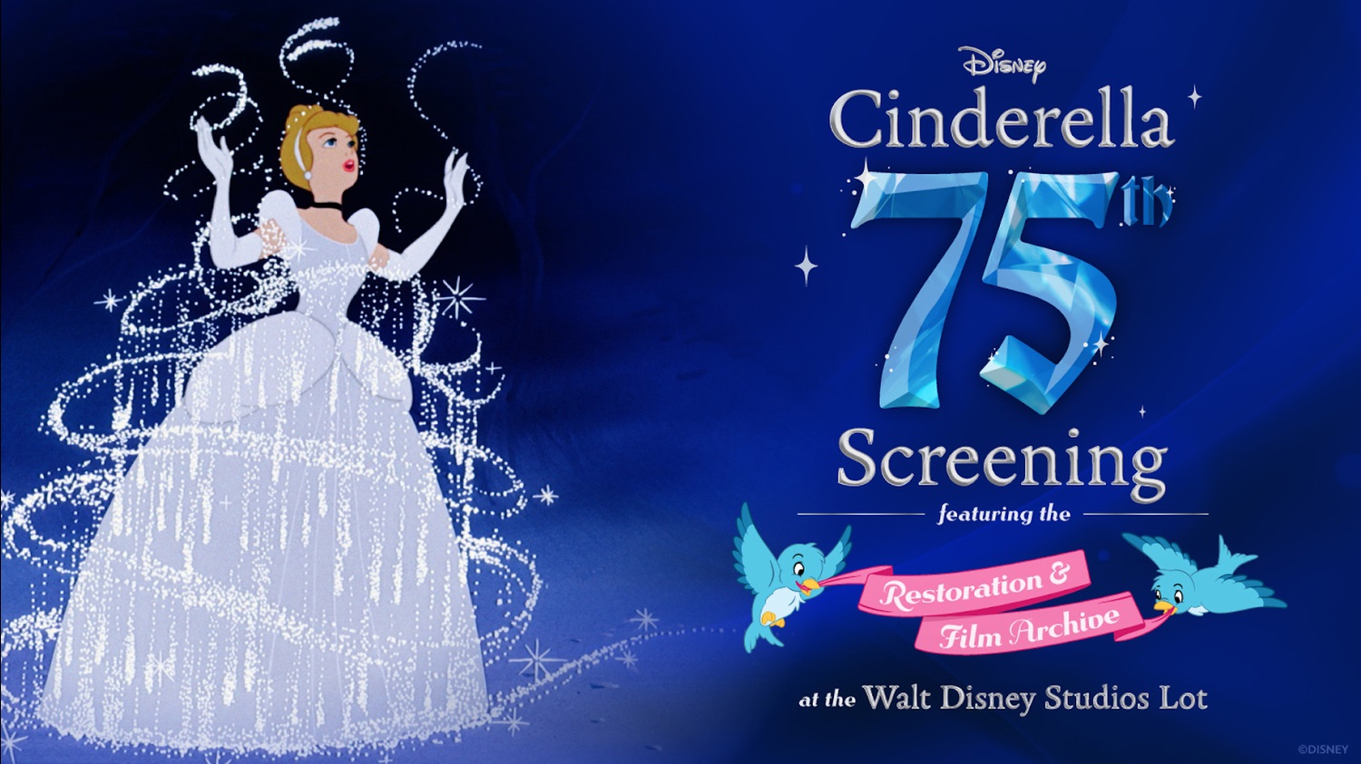 - Celebrate Walt Disney’s classic Cinderella with an enchanting 75th anniversary screening on the Walt Disney Studios Lot on Saturday, June 7th. Hear from experts at the Walt Disney Studios Restoration and Film Archive on how they’ve preserved and restored this enchanting story. Ticket information will be shared at a later date.