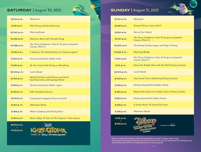 - A variety of supplementary events will take place during the weekend, including D23 Kuzcotopia Night at Typhoon Lagoon, Disney ’80s-’90s Celebration in Concert, A Goofy Movie Throwback Premiere, and more.