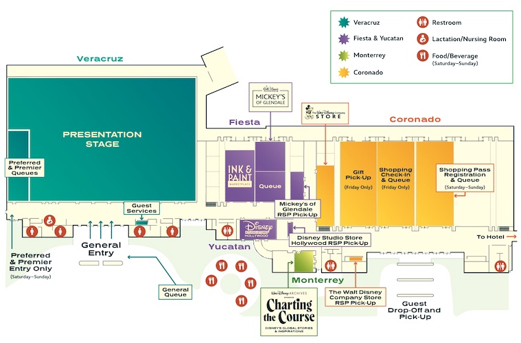 - The map for the event has also been shared, showcasing where fans can enjoy the event’s presentations, the Walt Disney Archives exhibit, and various shopping experiences.