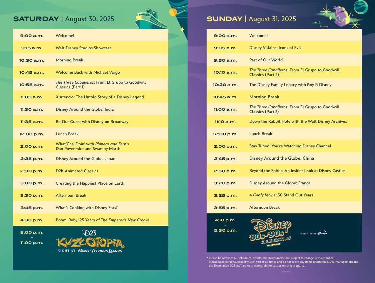 - A variety of supplementary events will take place during the weekend, including D23 Kuzcotopia Night at Typhoon Lagoon, Disney ’80s-’90s Celebration in Concert, A Goofy Movie Throwback Premiere, and more.