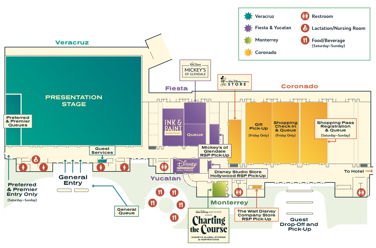 - The map for the event has also been shared, showcasing where fans can enjoy the event’s presentations, the Walt Disney Archives exhibit, and various shopping experiences.
