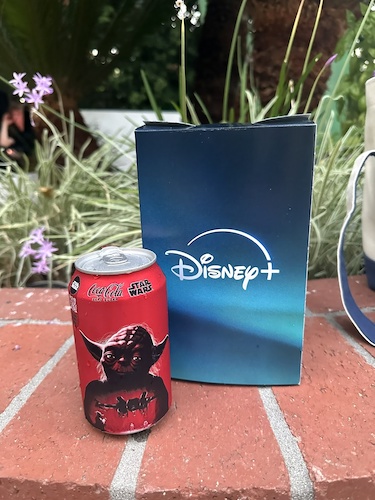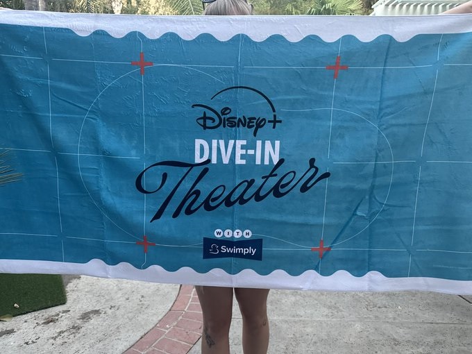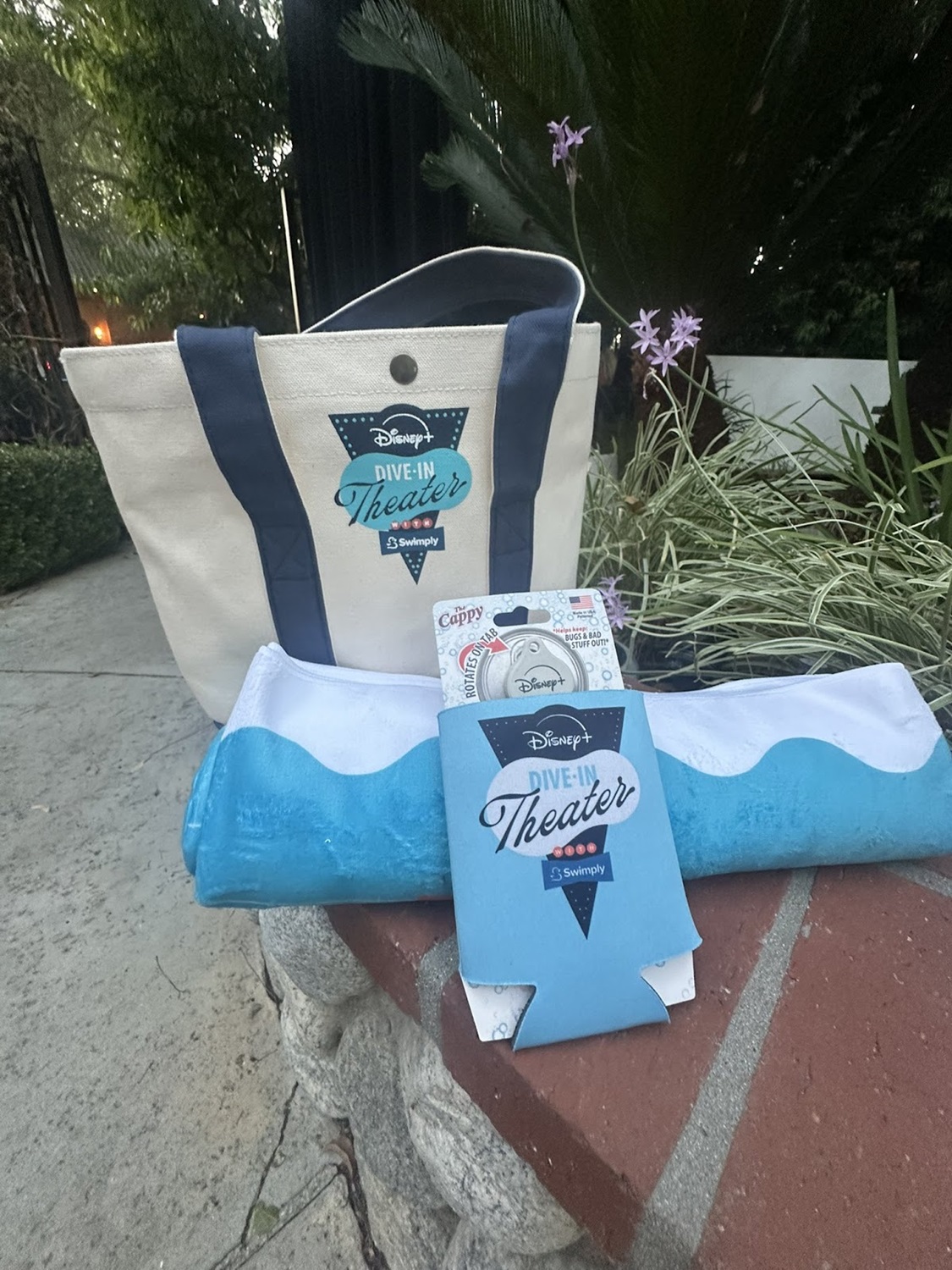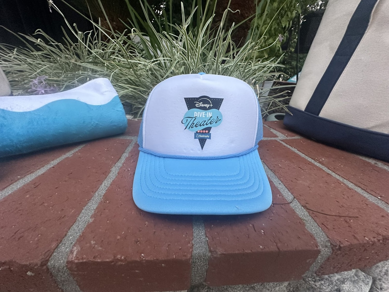 Inside the goodie bag were Disney+ Dive-In Theater with Swimply gear, including a towel, a trucker hat, and a The Cappy can tab.