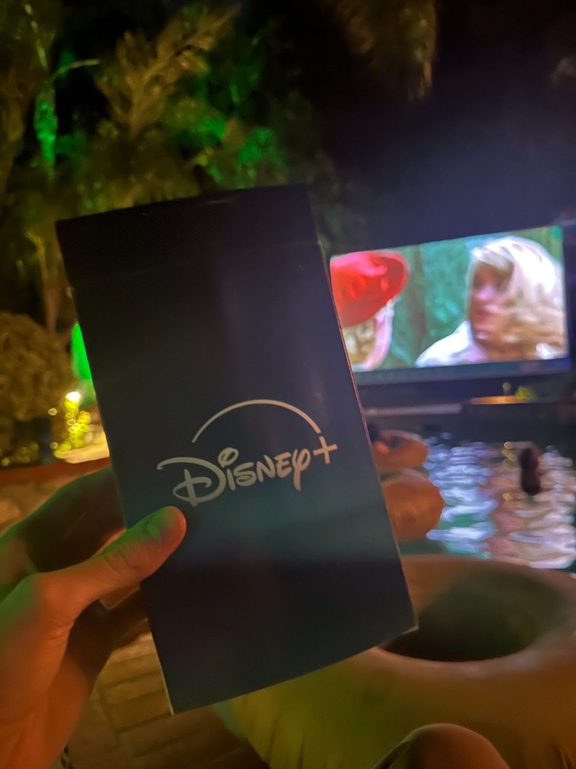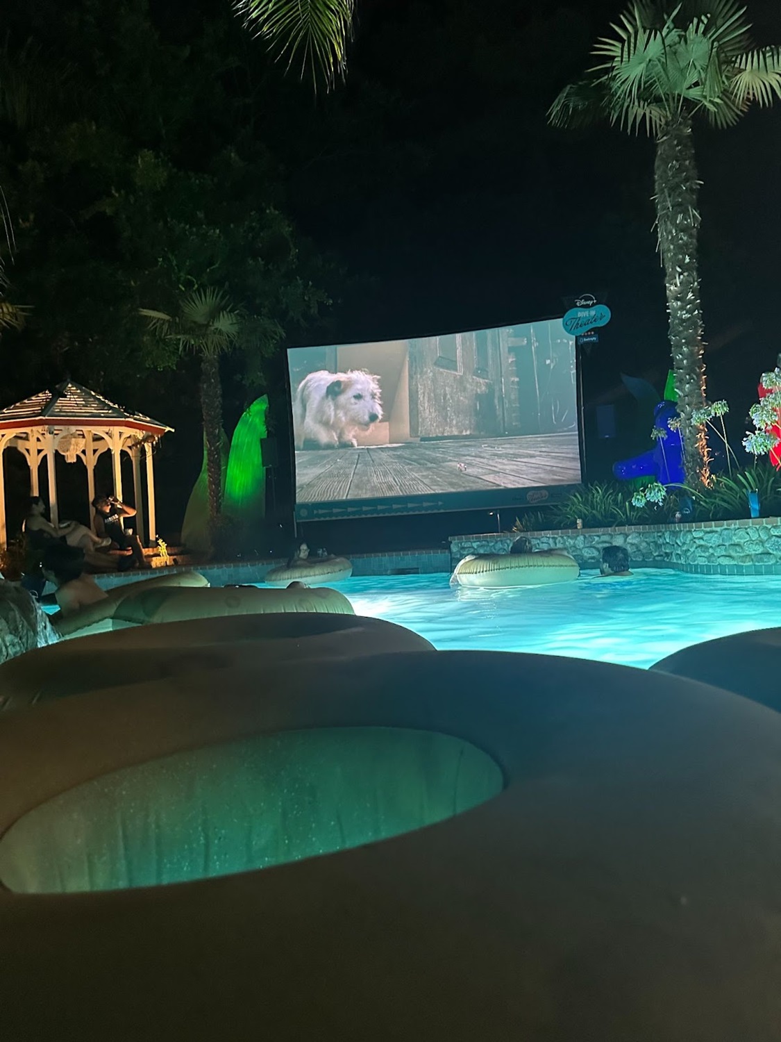 Once the sun set enough to enjoy the massive projection screen located in front of the pool, guests were able to swim in the pool and relax in the hot tub while enjoying the classic 1989 Disney film.