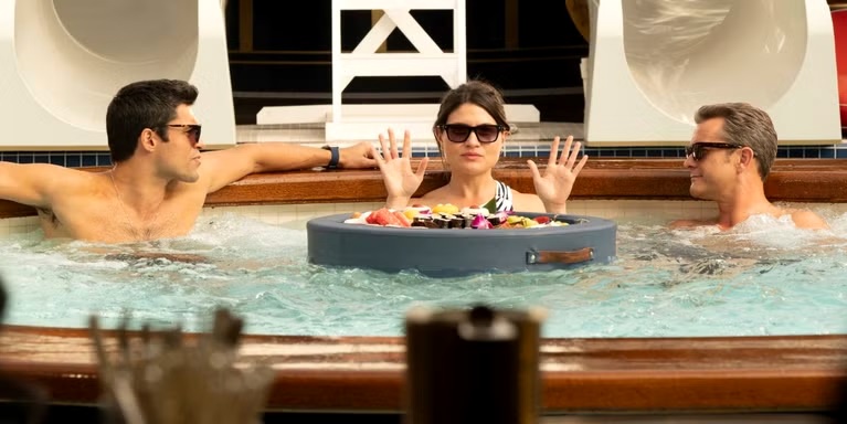 Now, this show is stupid. We all know this. If you’ve stuck around this long (which is unlikely, due to the ratings HELLO!), you come to expect a certain level of dumb from this primetime soap. However, this episode took an uncanny valley tour. As if it was a failed Girl Meets World plotline, the hot tub slowly becomes a place to reckon with their past. As the trio sit in the hot tub the next day, discussing the aftereffects of the no-baby knowledge, the scene cuts to younger versions of themselves discussing their future. Alone in my home, I audibly uttered “huh?" as if I was in the middle of a college lecture of quantum physics.