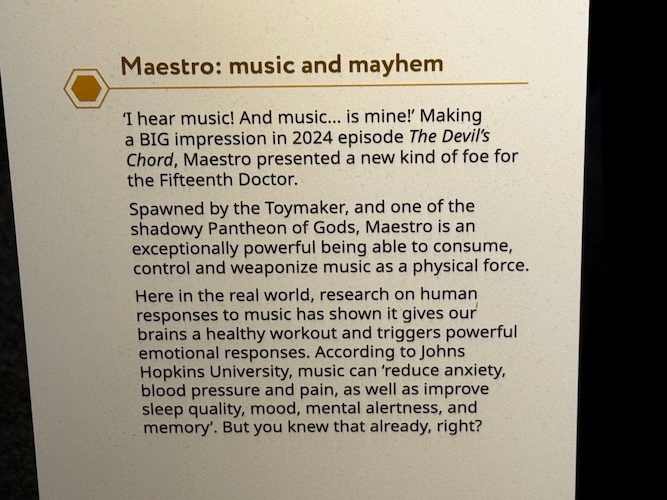 A handy timeline of all the actors who played the Doctor is on display, although if you’re attending this exhibit, you probably already know!