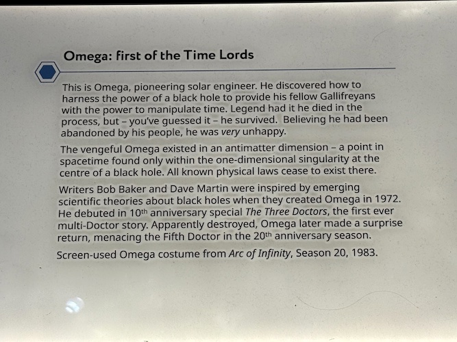Omega, who made a “triumphant return" in the most recent season finale, appears via his costume from the 1983 serial “Arc of Infinity."