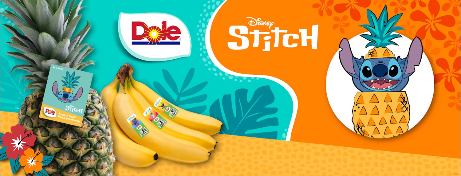 - As an in-store preview, shoppers can now find Disney’s Stitch on millions of DOLE Tropical Gold Pineapple hangtags and DOLE Banana stickers throughout the U.S. and Canada.