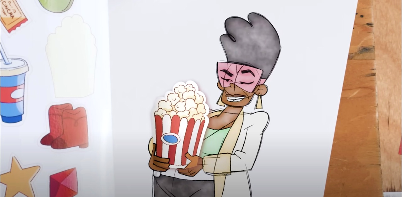 We’ve already seen some characters from Big City Greens in this short form series, but now it’s Gramma’s turn. Of course, she doesn’t trust our animator and swindles him into drawing her trademark sword, allowing her to jump off the page and create havoc.