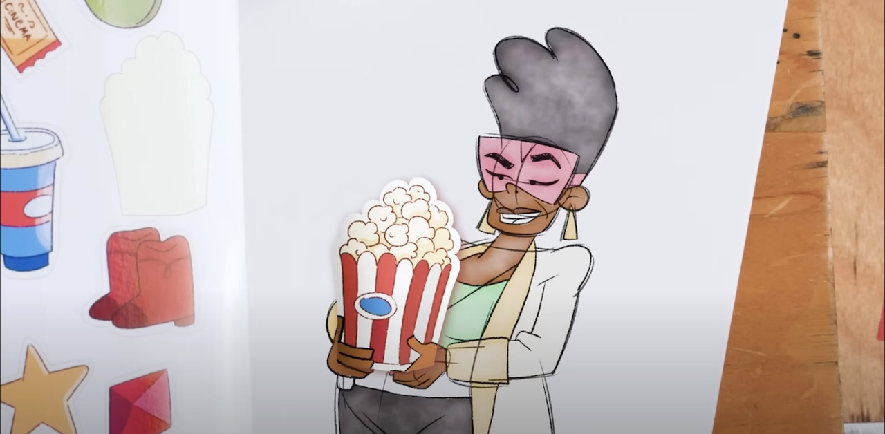 We’ve already seen some characters from Big City Greens in this short form series, but now it’s Gramma’s turn. Of course, she doesn’t trust our animator and swindles him into drawing her trademark sword, allowing her to jump off the page and create havoc.
