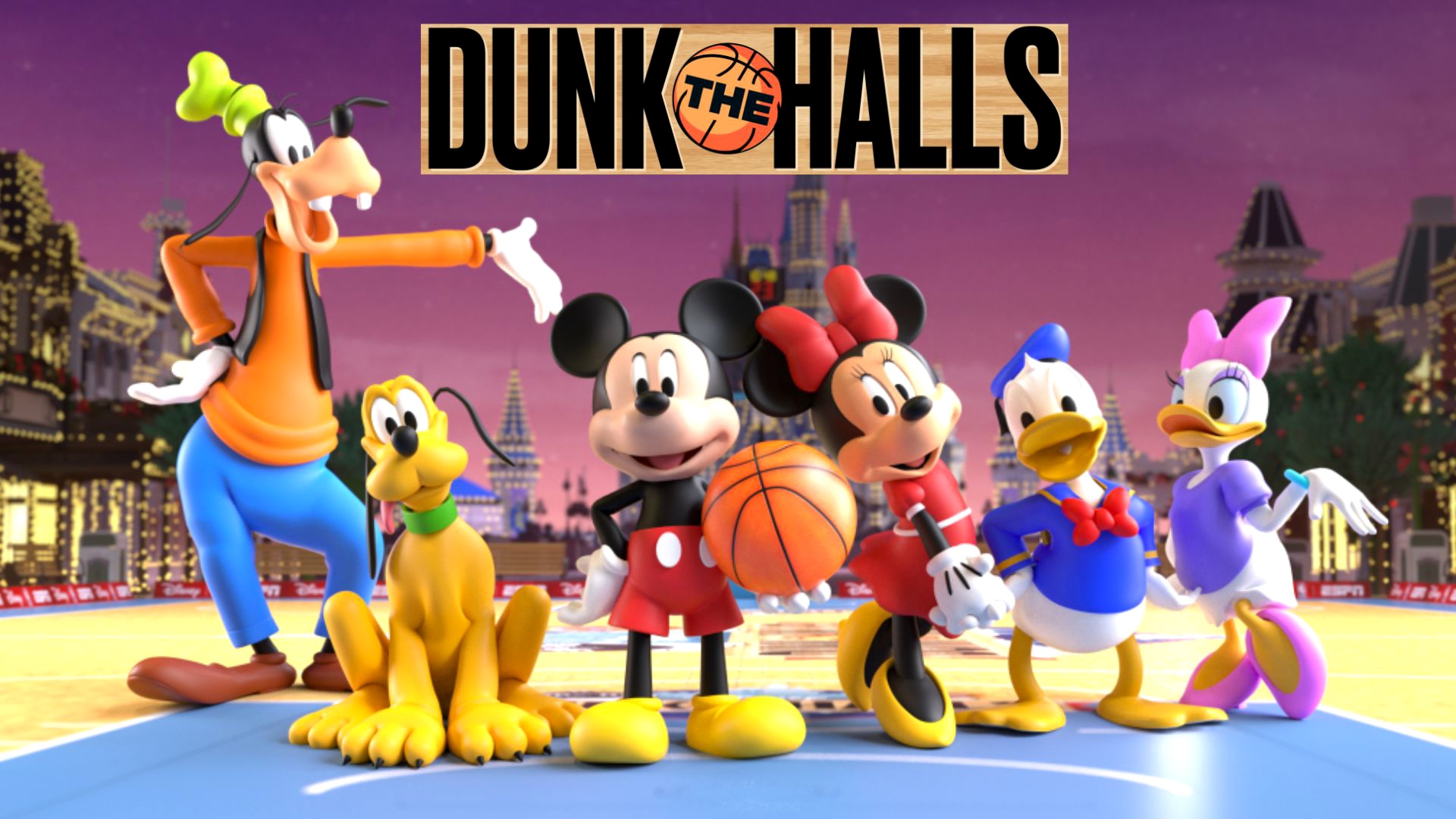 - Held for the first time in 2024, and airing on Disney+, ESPN2 and ESPN+, the first Dunk the Halls NBA game consisted of a special alt-cast of a live game between the San Antonio Spurs and New York Knicks - except this version took place on a digital recreation of Main Street U.S.A., with the likes of Mickey Mouse, Minnie Mouse, Goofy, Donald Duck, Daisy Duck and Pluto joining in on the yuletide basketball fun.
