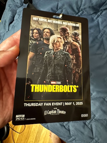 - In addition to getting a chance to see Thunderbolts*, attendees of the Fan Event also went home with some extra special items. For Thursday, the gifts included an event credential, a Thunderbolts* cereal box, and a Thunderbolts* tote back.