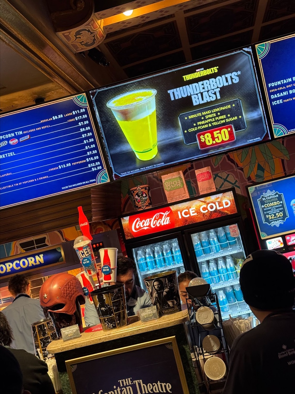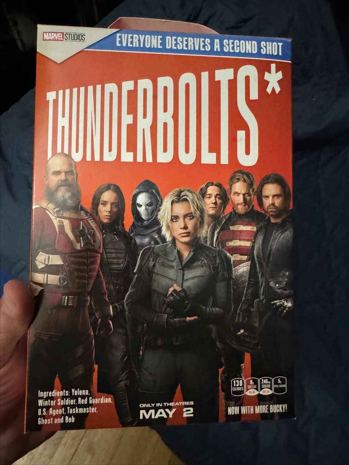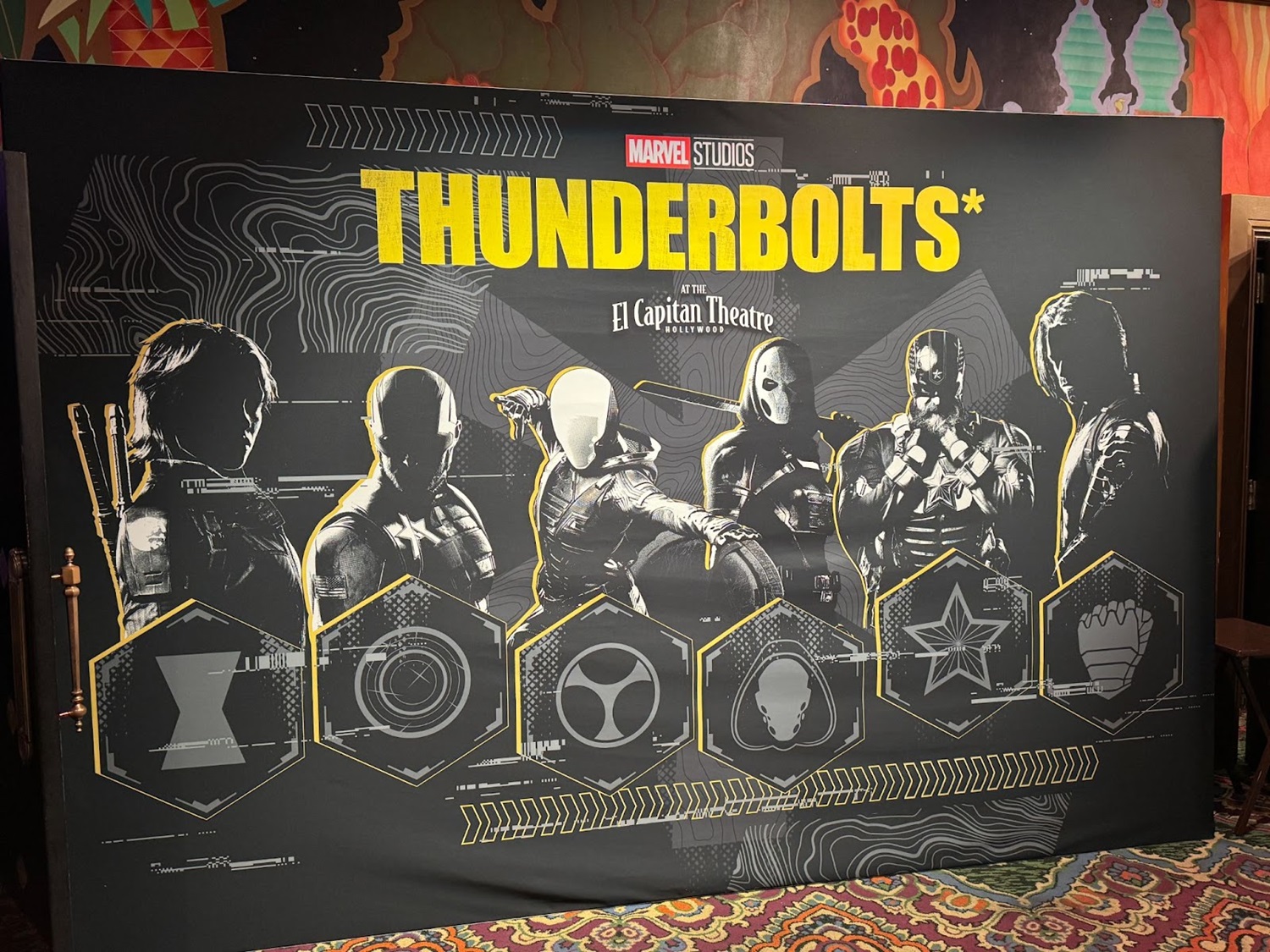 - The theater also had two dedicated photo ops, with a poster standee as well as a Thunderbolts* cereal box photo op.