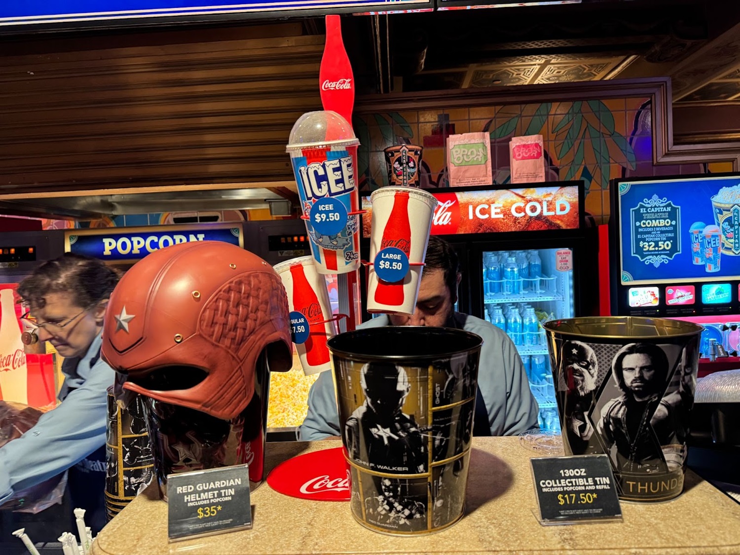 - In the trend of souvenir popcorn buckets, the El Cap was ready to go with three special 130 oz collectible tins. A special Red Guardian tin was absolutely the highlight of the collectible containers, which came fitted with the character’s helmet.