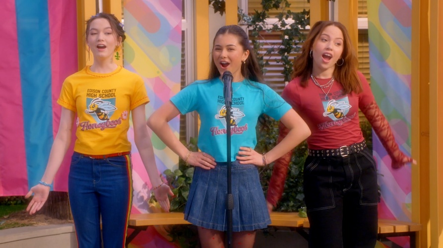 The week leading up to Homecoming was Spirit Week. On Pajama Day, Posey (Lumi Pollack), Jade (Carmen Sanchez), and Tulip (Ruby Marino) auditioned to perform the school’s fight song. Principal Jeffers (DaJuan Johnson) put a lot of pressure on them, sharing that the last time the fight song was messed up, the Fighting Honeybees lost the game. That was 17 years ago.