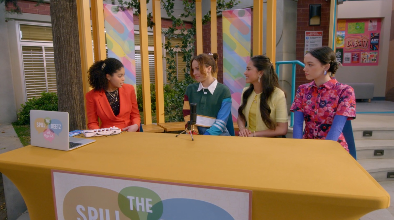 Back in Freshman year, Jade was a huge fan of the Spill the Deetz podcast, hosted by classmate Maggie Deetz (Symera Jackson). She and her friends sat in on a live taping as Maggie humiliated another student, Ezra (Landon Gordon), live in front of the school. Recognizing the Electric Bloom girls, Maggie asked them to be guests on a future episode. Jade was excited, until Maggie told them the date - October 18th.