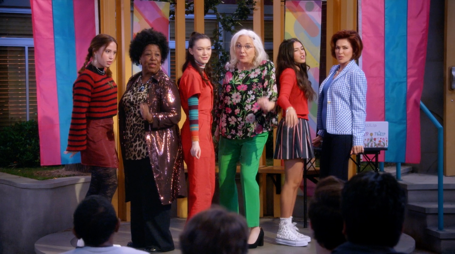 When Mr. B. introduces Electric Bloom at the fundraiser, someone boos. Emboldened by The Lounge Ladies, Electric Bloom brush it off and welcome their friends to the stage for a collab. “There’s Still Some Dreams I’m Gonna Chase," they sing. Later, Eddie gave The Lounge Ladies their gig back, and they welcomed Electric Bloom to share the stage with them there.