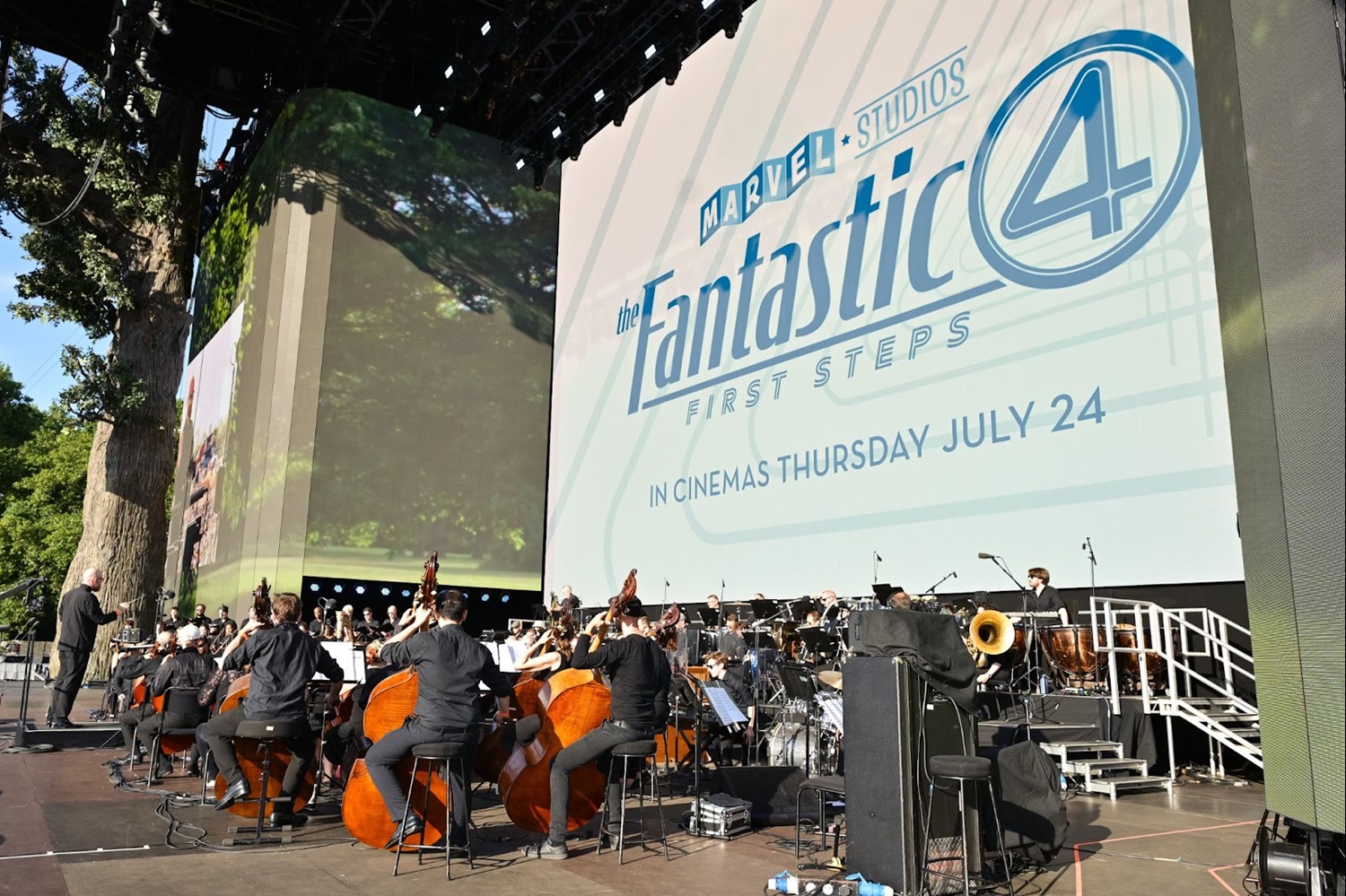 - Next it was time for a unique UK fan event, during which The Fantastic Four: First Steps composer Michael Giacchino introduced the musical suite from the film as performed by the Royal Philharmonic Orchestra. This was live-streamed into the screening of footage at the BFI IMAX cinema in South Bank.