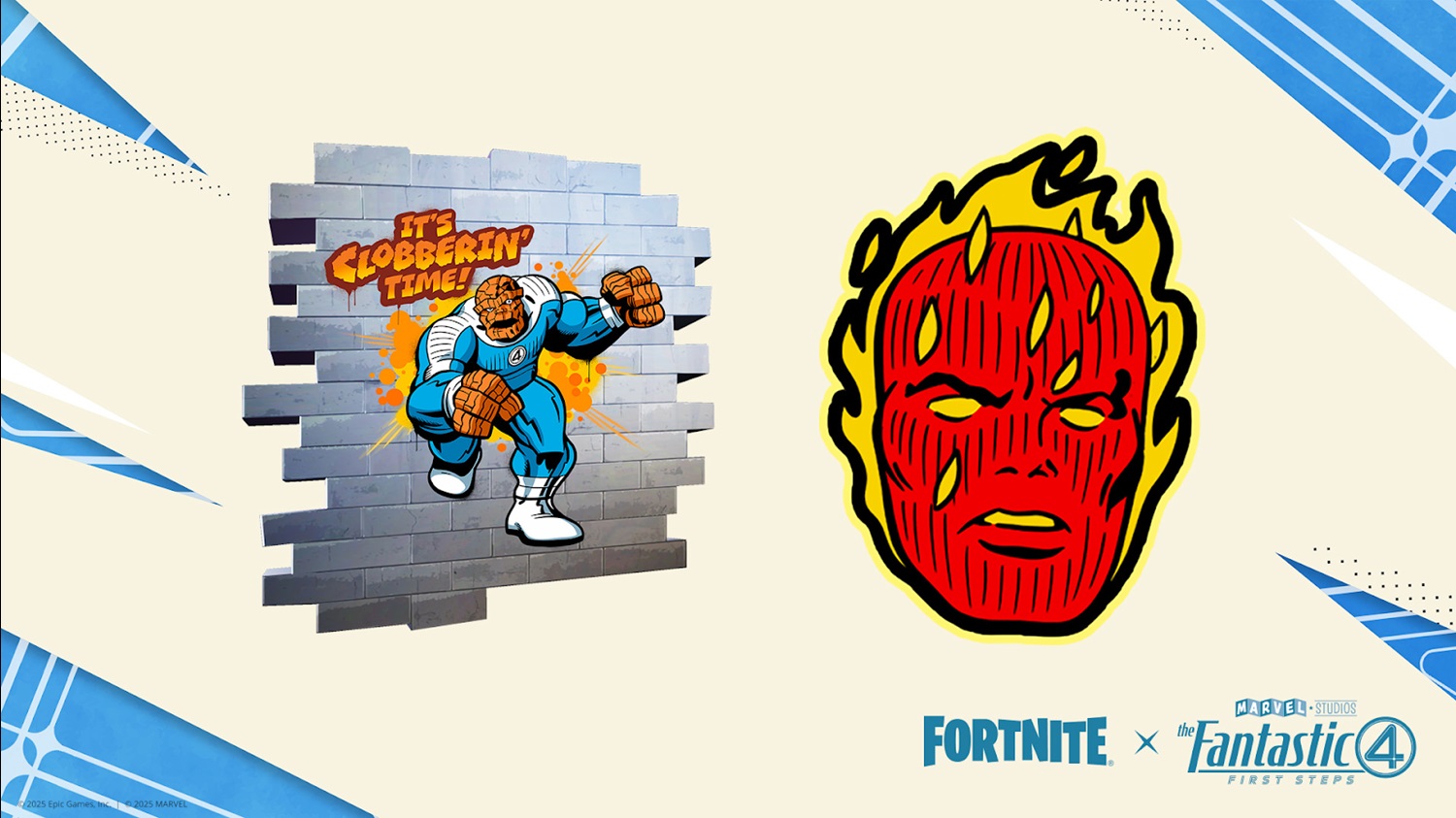 - Johnny Storm / The Human Torch: The hot-headed pilot. The outfit features the built-in "Flame On!" Emote that transforms him into his fiery Human Torch alternate style. It also includes the universal Torch's Flame Pickaxe and a character-specific Johnny’s Fantastic Logo Back Bling.