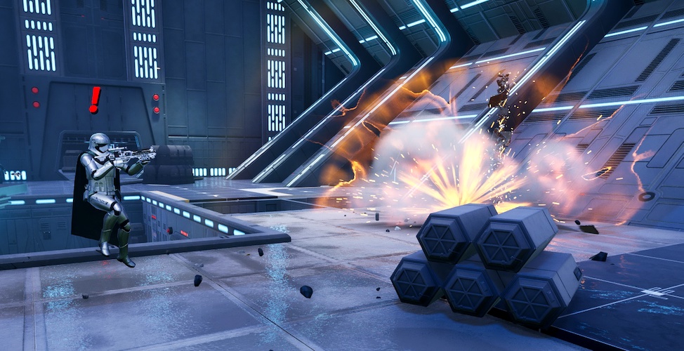 I hopped aboard the train to unlock the loot crate, but found myself confronted with another enemy player. It was my time to try Force Lightning, and I couldn’t wait. Activated by blocking with the lightsaber and pressing the action button, lightning shot from my fingers, dealing quick damage to the other player.