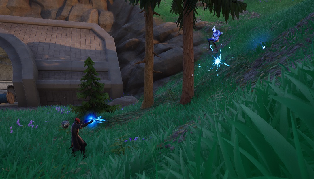 While I was excited to explore the Resistance Base, the storm was closing in on me, which meant it was time to venture out farther into the island. After exploring, and taking down a few enemy players, I was greeted with the familiar lightsaber hologram icon on my map, which looks pretty much identical to those used in past Star Wars events. As I approached, I was delighted to find Darth Sideous’ hologram. After “training" with the character, I received the Red Lightsaber equipped with Force Lightning. I love Fortnite’s use of lightsabers, which add really helpful movement abilities, like Force Jump, that really make combat more fun.
