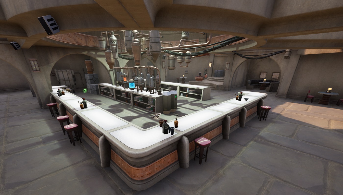 This includes a Cantina, where the iconic Star Wars jingle echoes through the deserted looking bar.