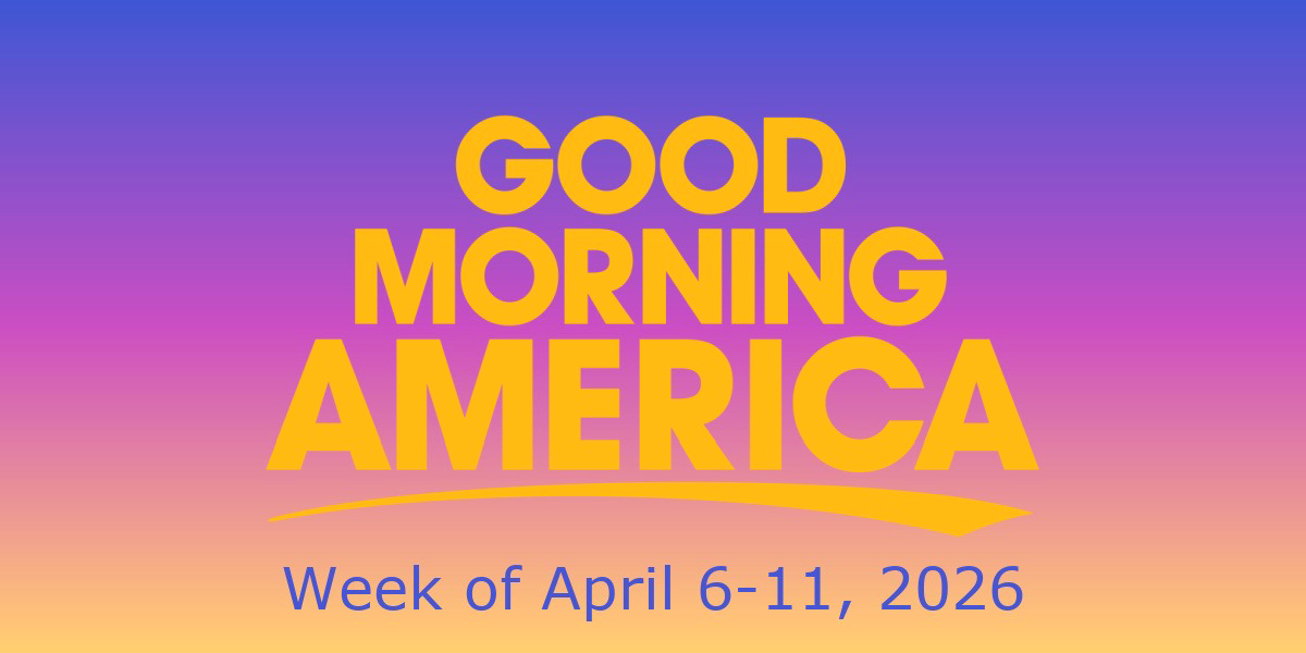 As we enter a new week of television programming, Good Morning America has announced the guests for April 6-11. The show will welcome authors, musicians, and other guests who will discuss their current and upcoming projects.