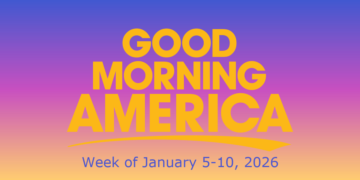 As we enter a new week of television programming, Good Morning America has announced the guests for January 5-10. The show will welcome authors, musicians, and other guests who will discuss their current and upcoming projects.