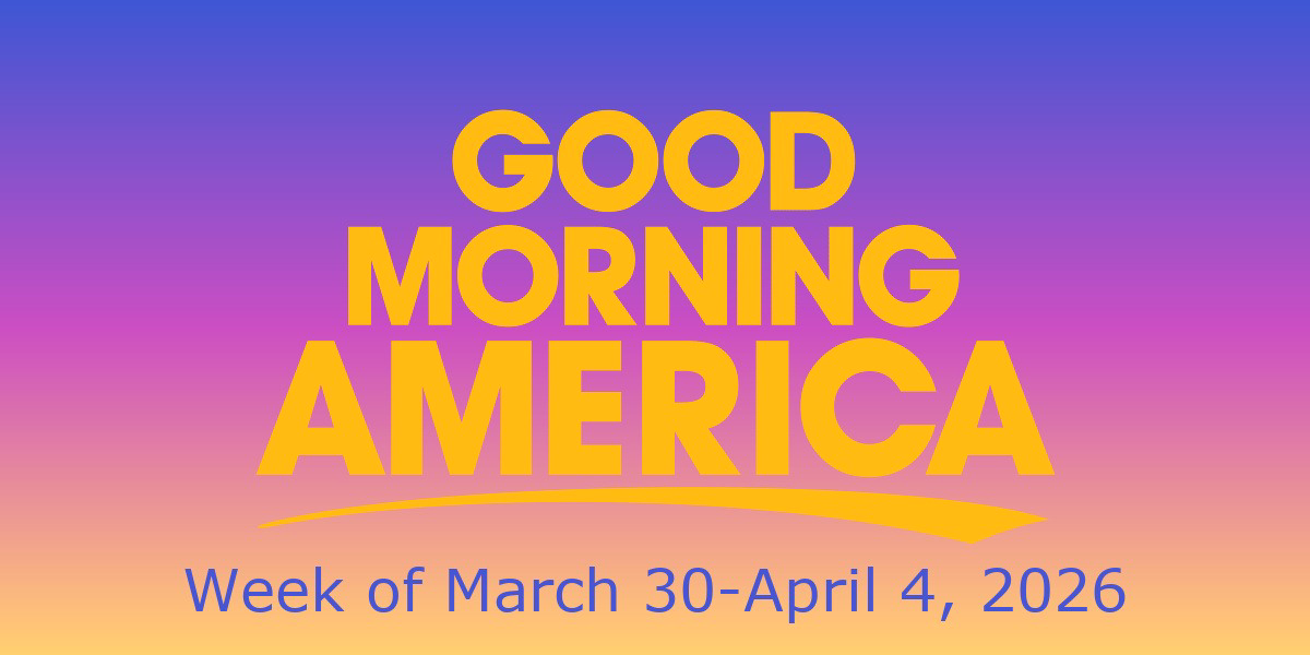As we enter a new week of television programming, Good Morning America has announced the guests for March 30-April 4. The show will welcome authors, musicians, and other guests who will discuss their current and upcoming projects.
