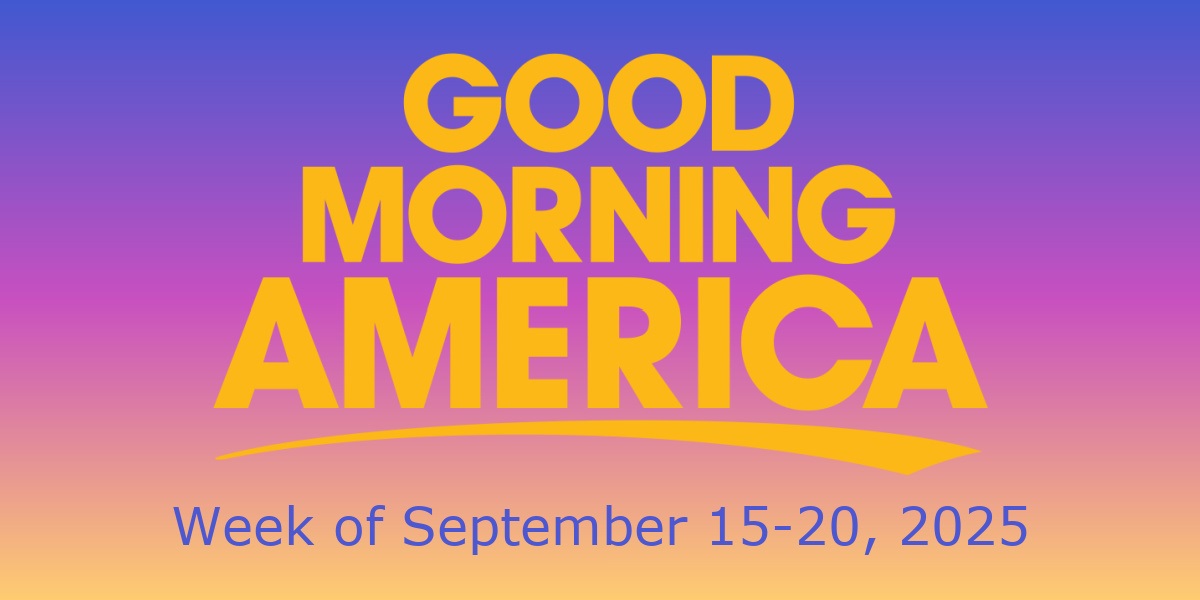 As we enter a new week of television programming, Good Morning America has announced the guests for September 15-20. The show will welcome authors, musicians, and other guests who will discuss their current and upcoming projects.