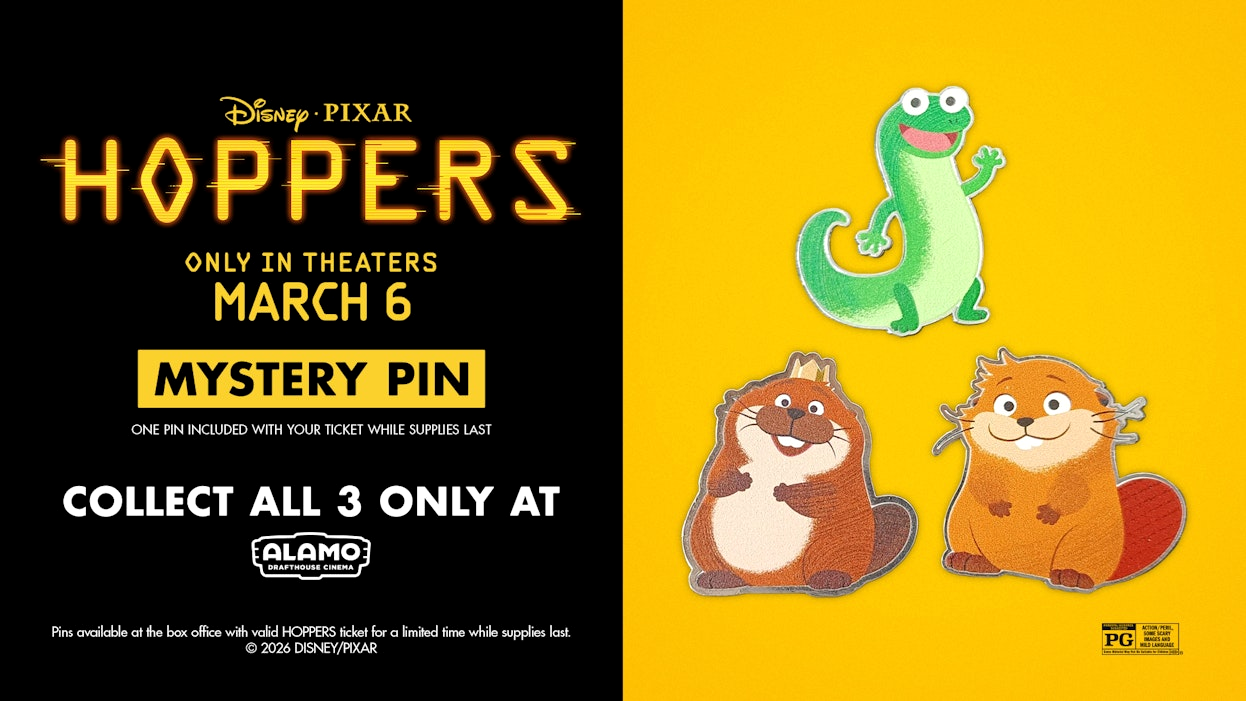 Those same pins seem to be available for more than a single event day at Alamo Drafthouse, where those who see Hoppers will get one included with each ticket purchase. Yes, it still remains a mystery which one they will get.