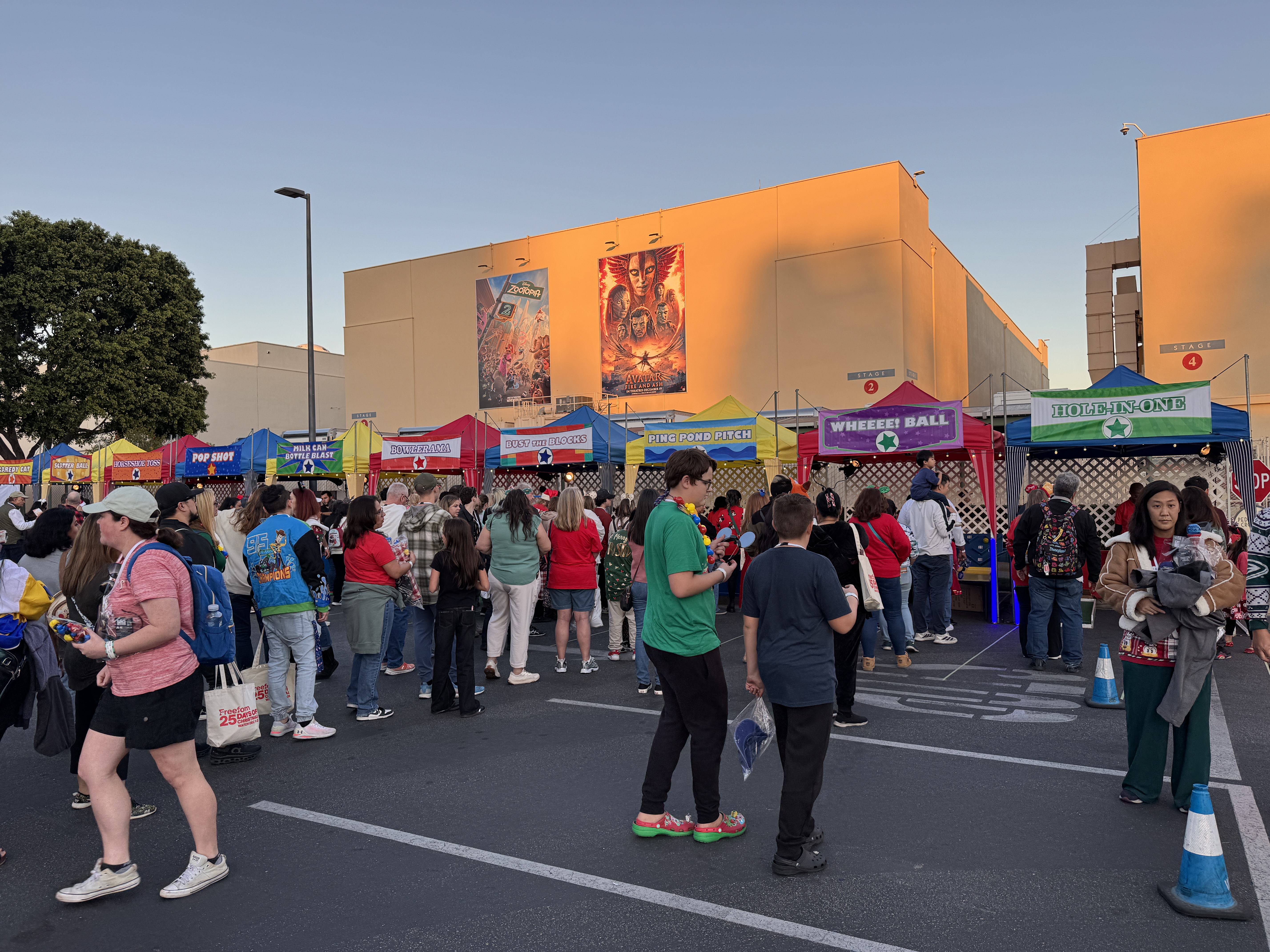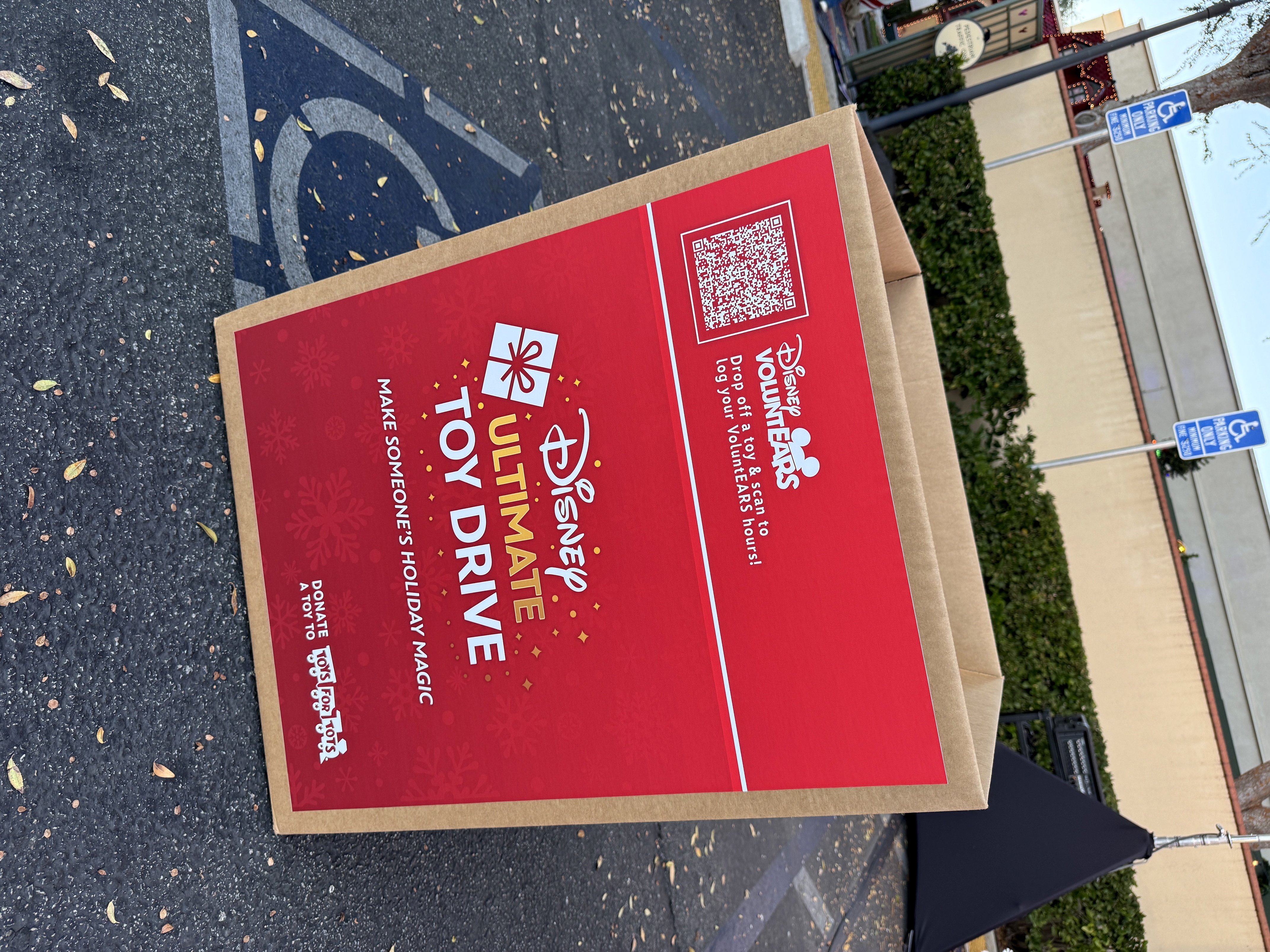 Here's a look at another backdrop photo op that doubled as a performance stage, a box for the Disney Ultimate Toy Drive presented in partnership with Toys for Tots, and a row of carnival-style games available to guests.