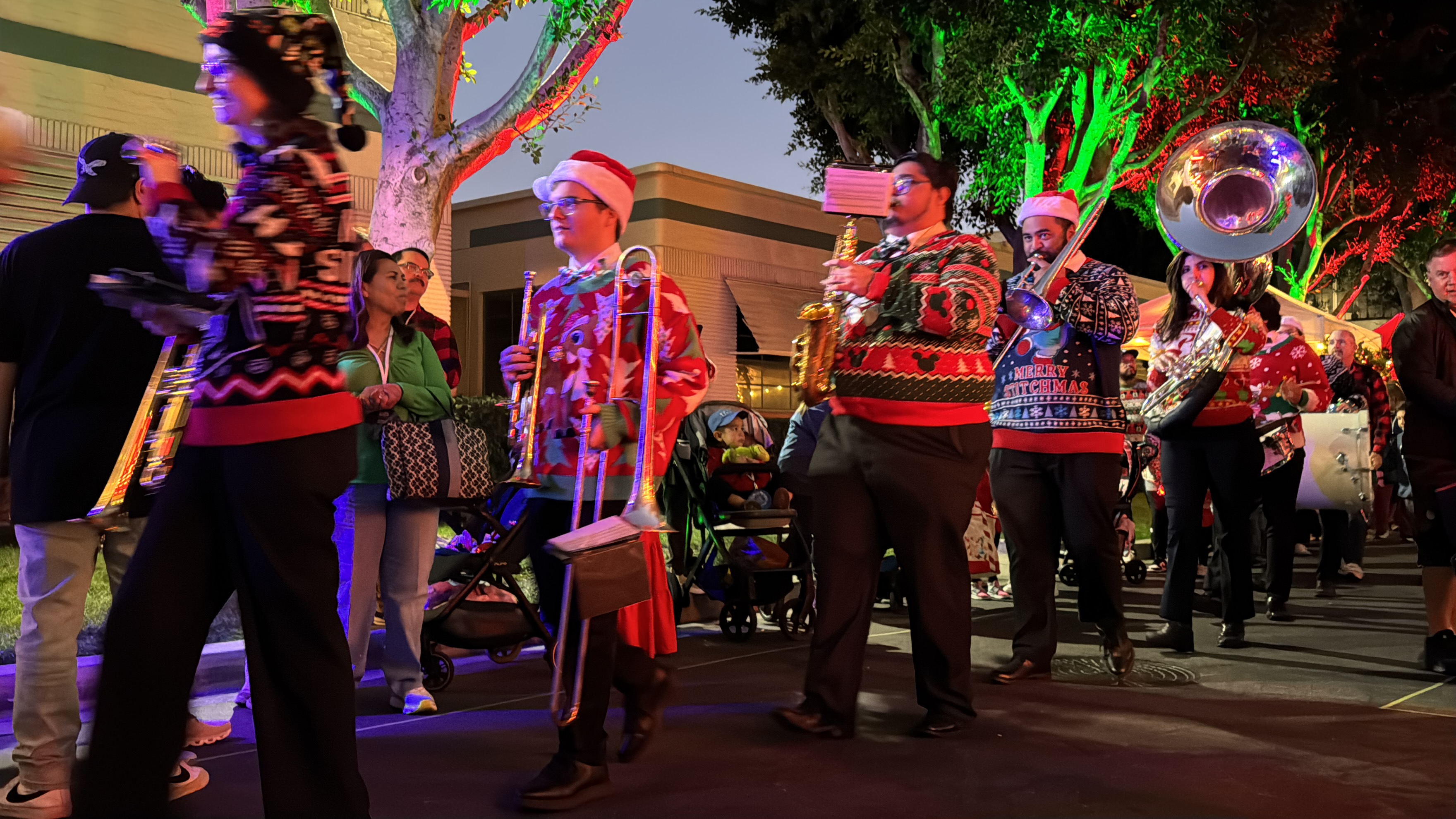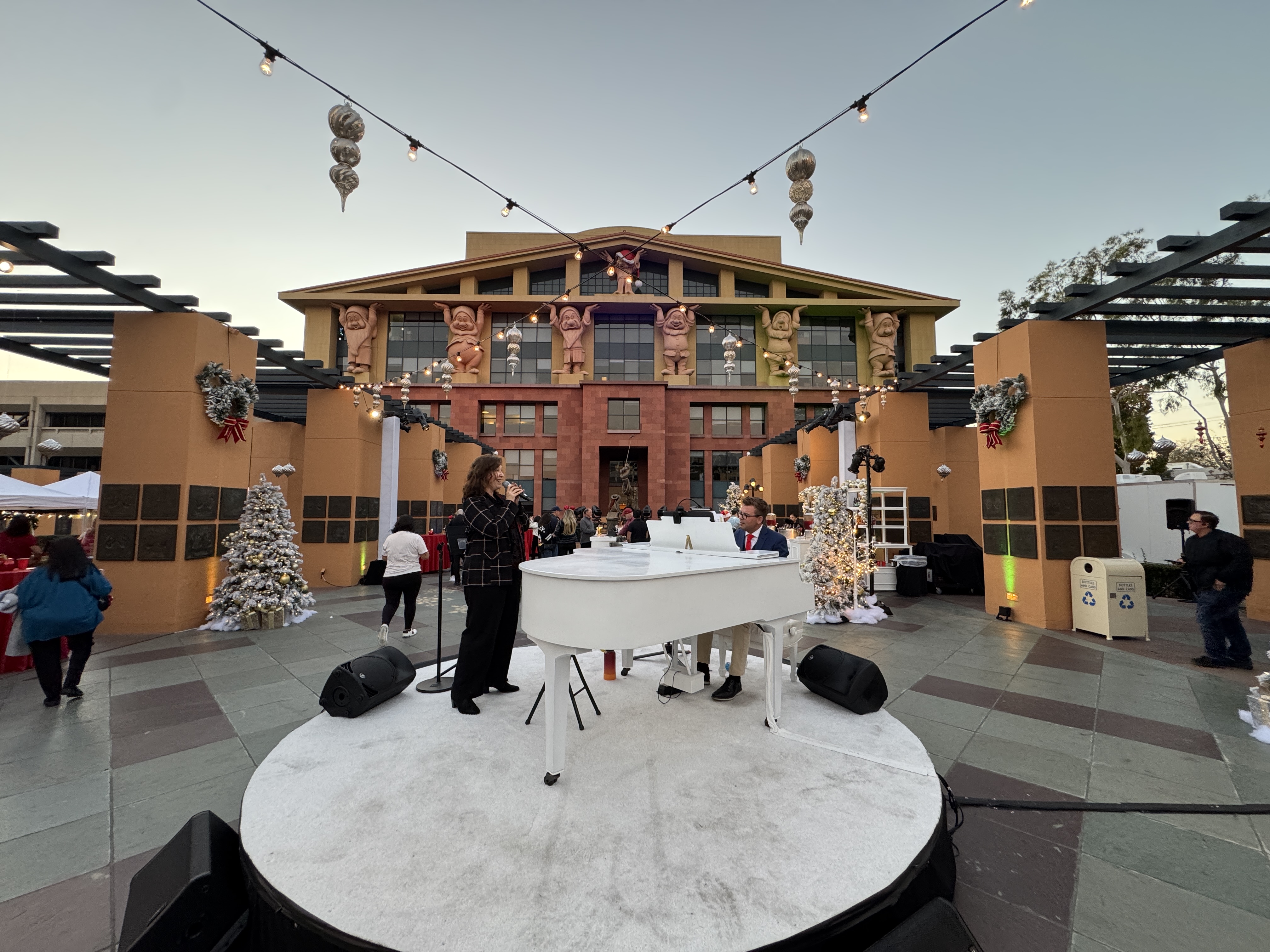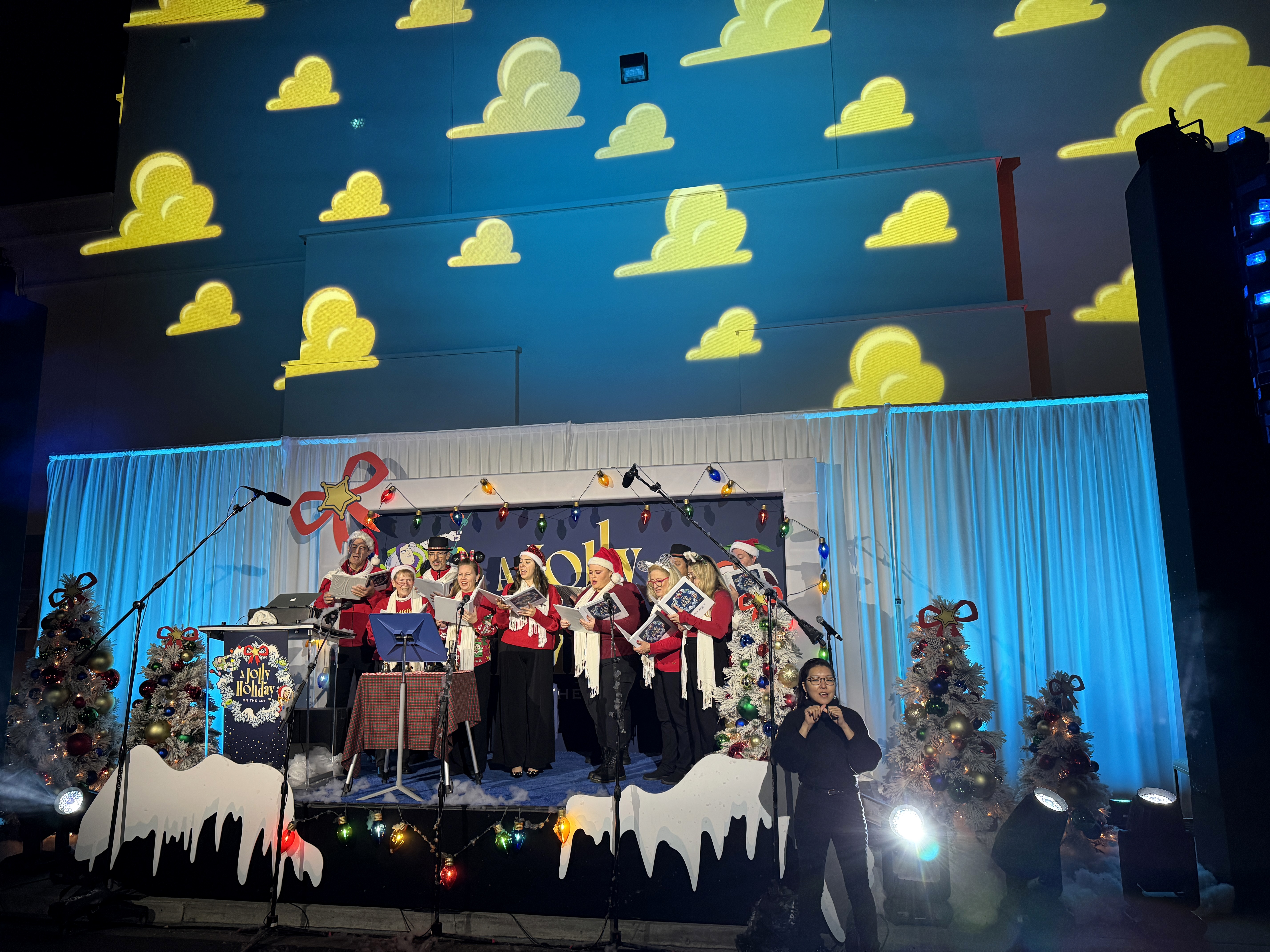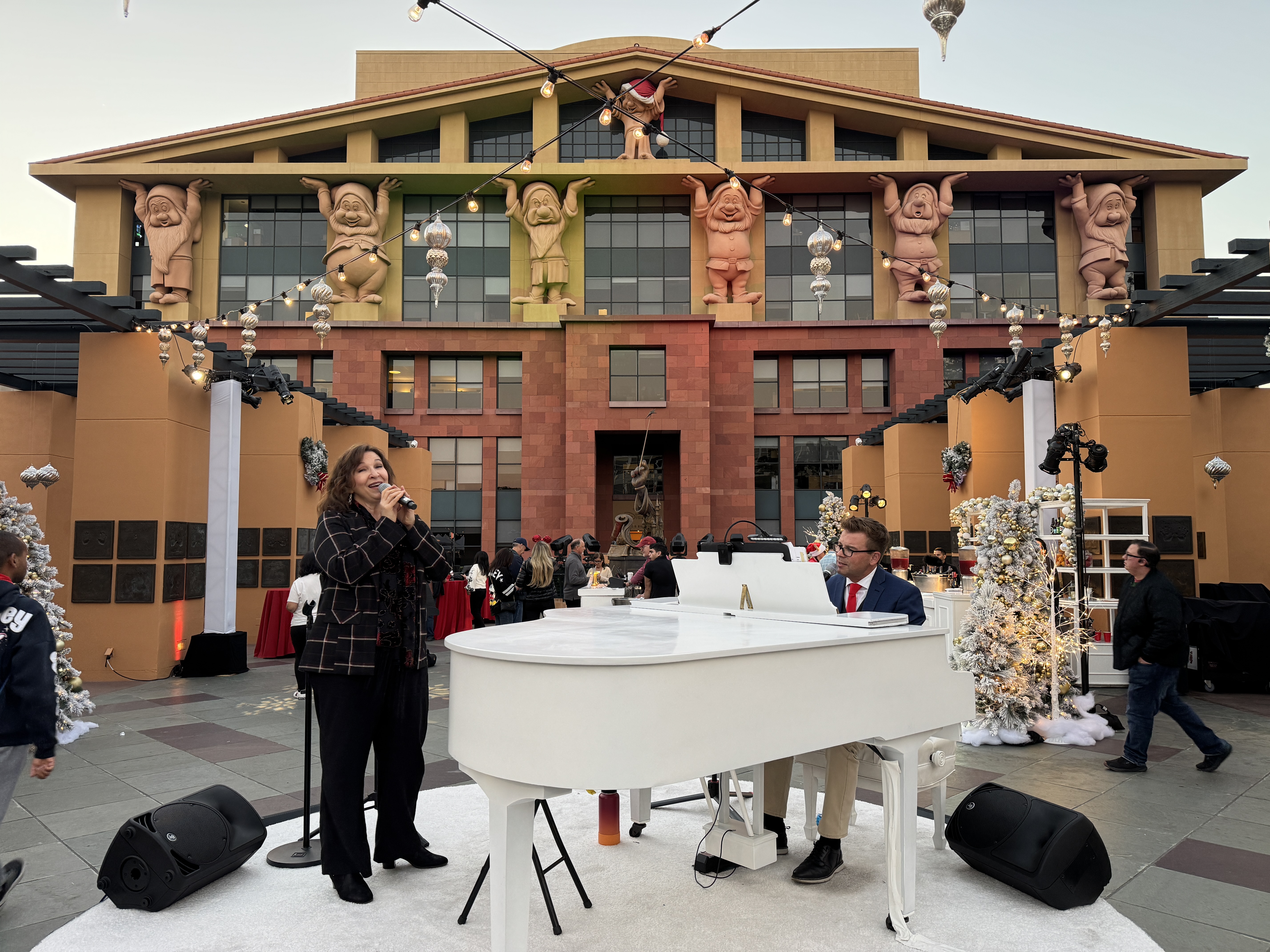 Christmas Carolers performed familiar holiday songs on the steps of the lot's old Animation building.