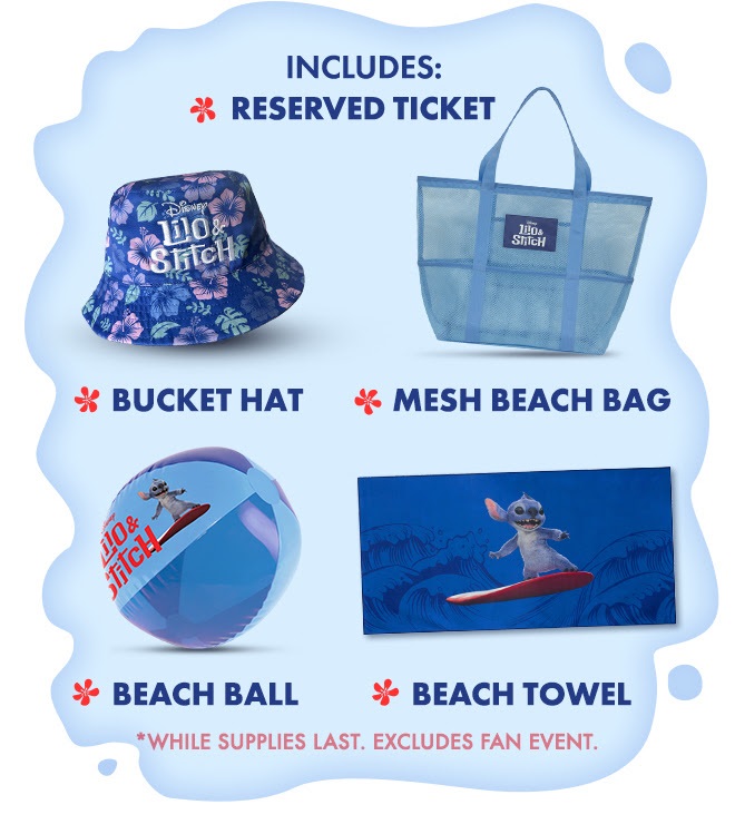 - In addition, while not available during the Fan Event, those attending other showings of Lilo & Stitch can purchase the special offer Fun in the Sun Bundle, while supplies last.
