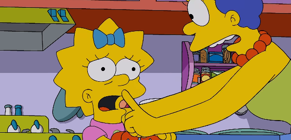 - As Maggie looks uneasy about Bart getting behind the wheel, Marge tells her not to speak as she is getting over laryngitis.