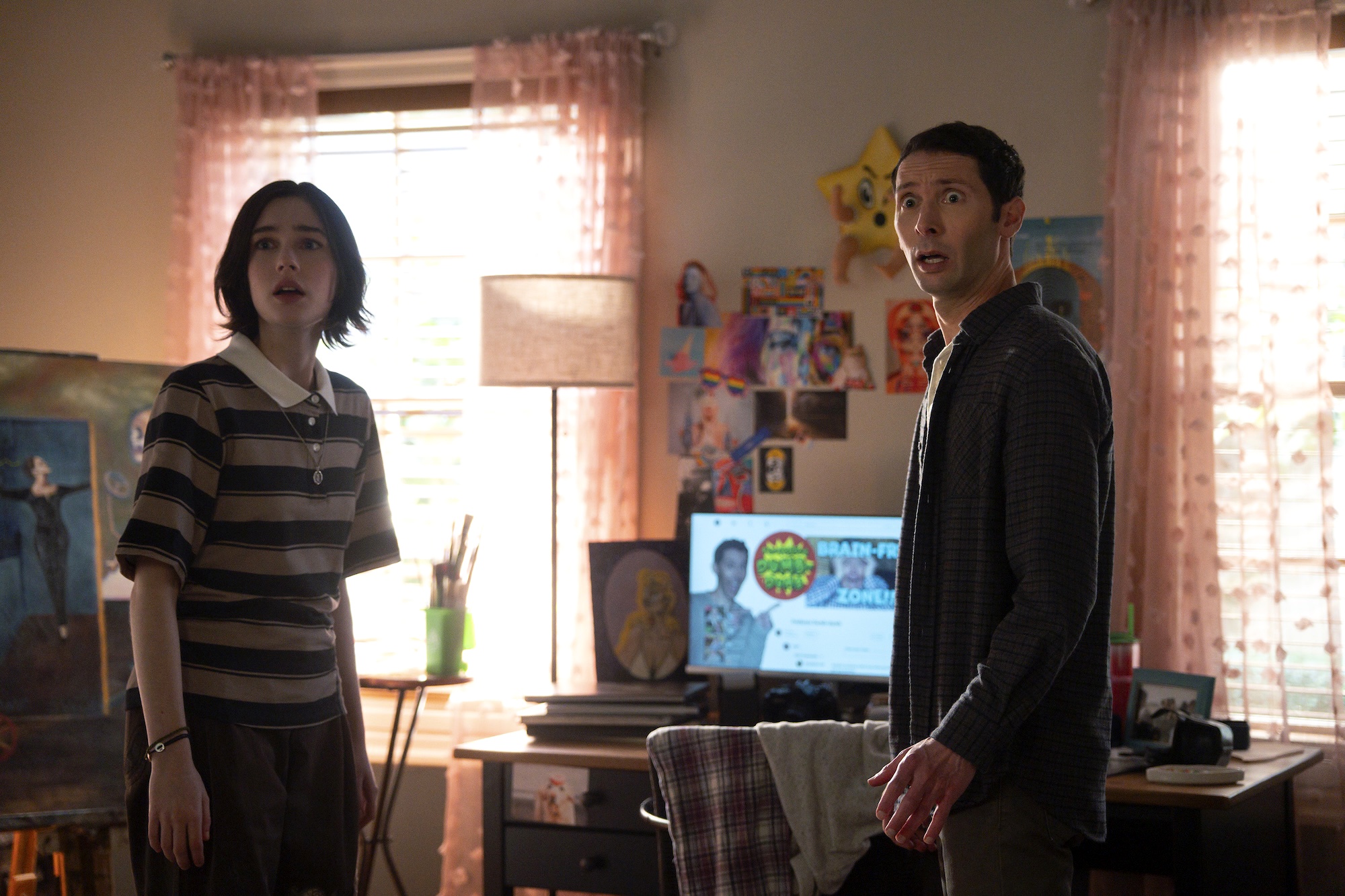 Leah is new and compelling all her own, doing the same thing that her father did as he navigated school in the early 00’s but now in today’s world - fourth wall breaks and all. Not to mention dealing with her father.