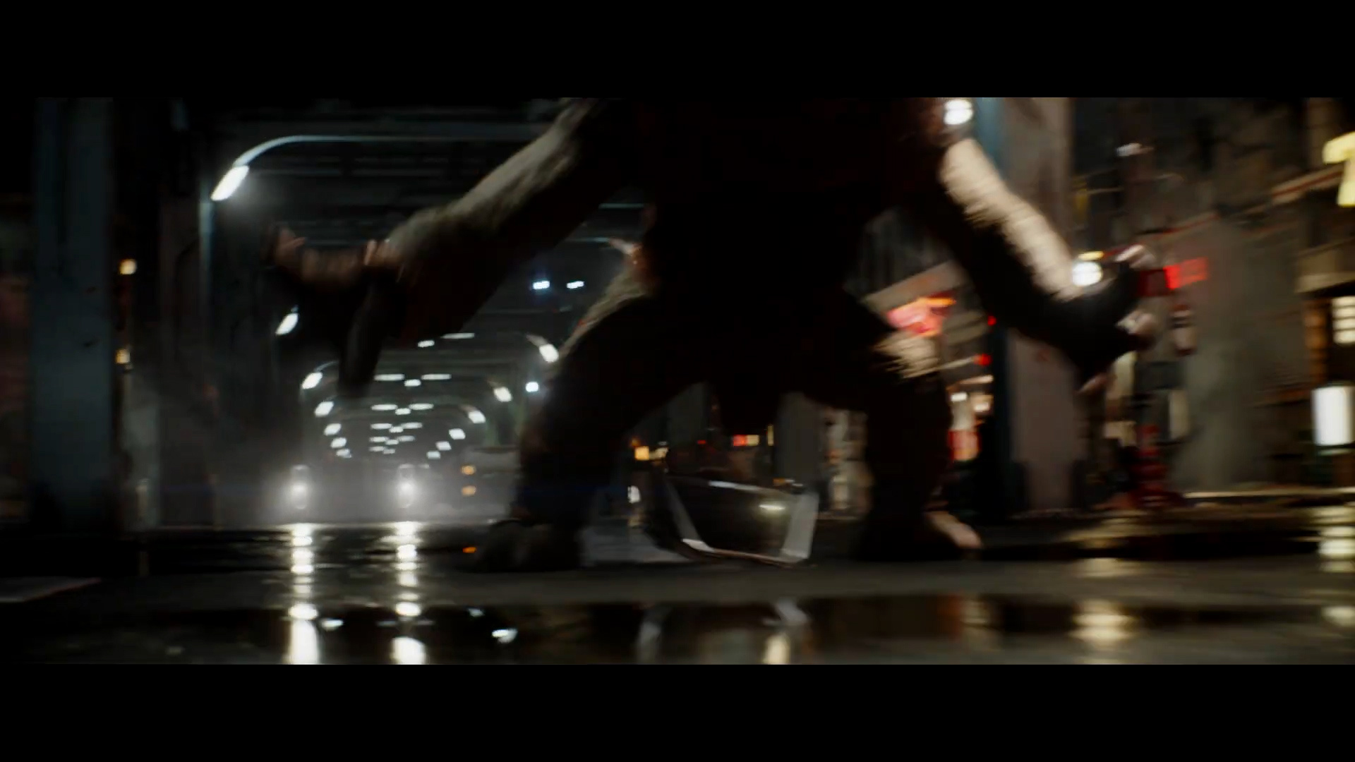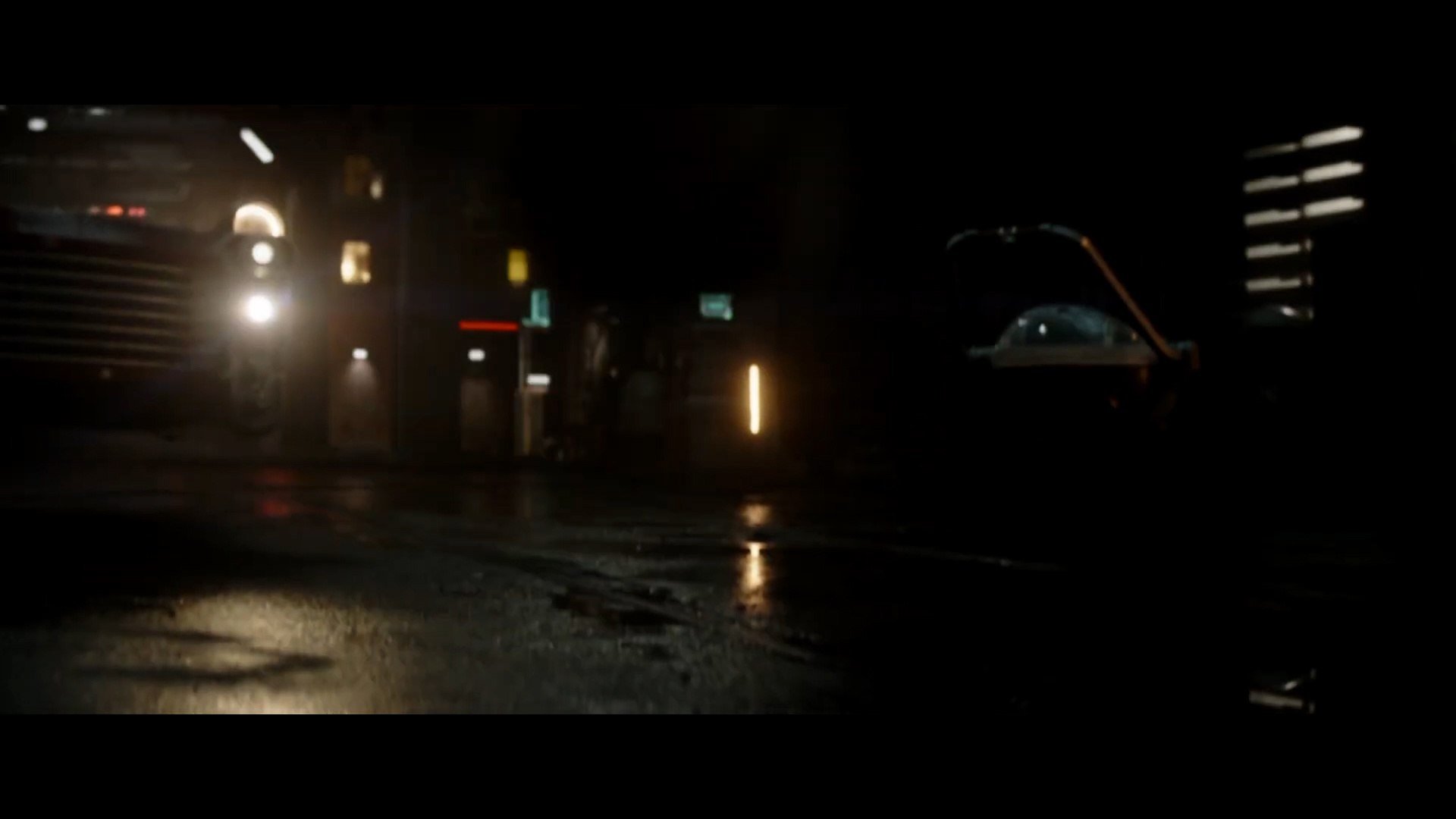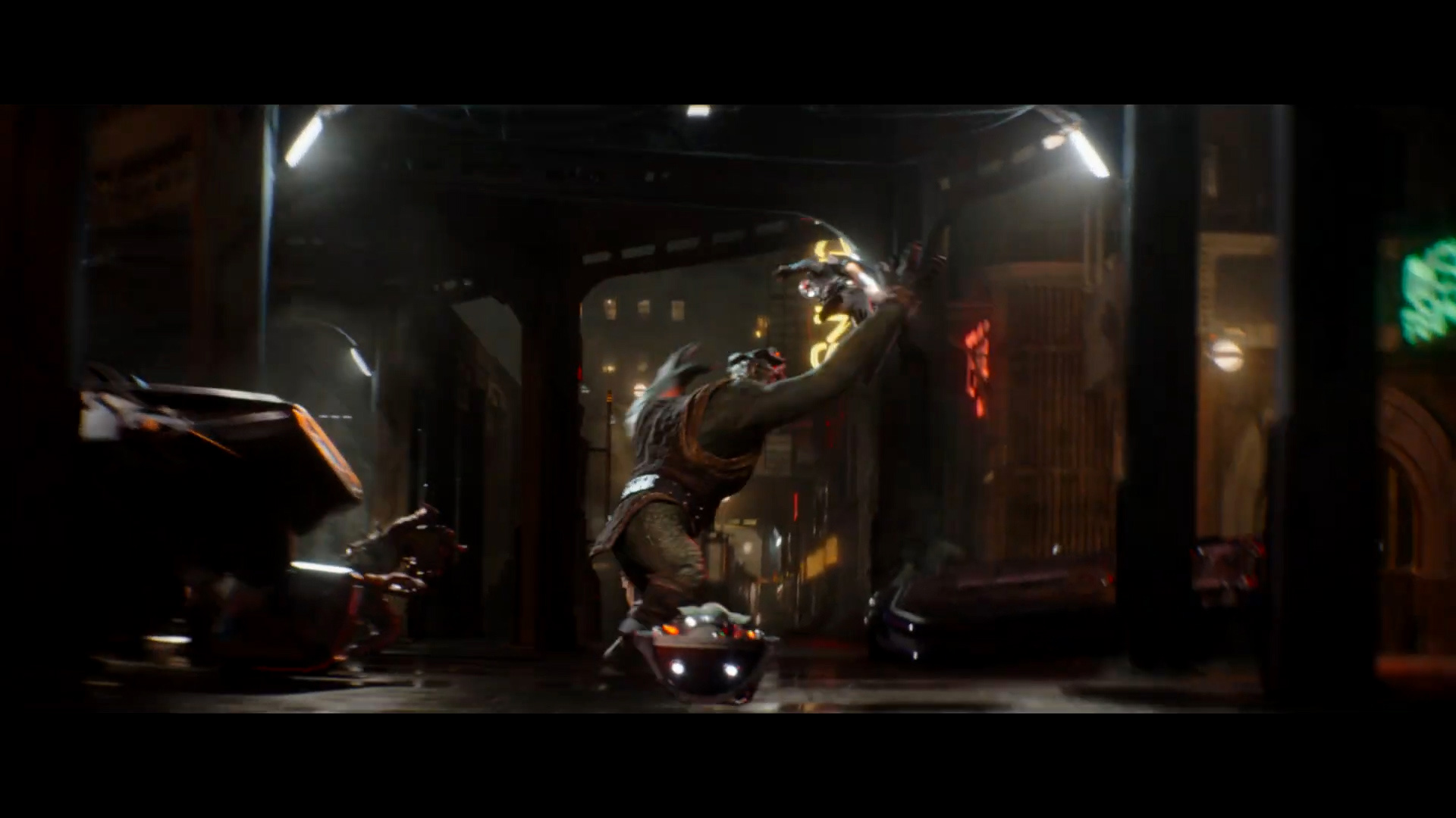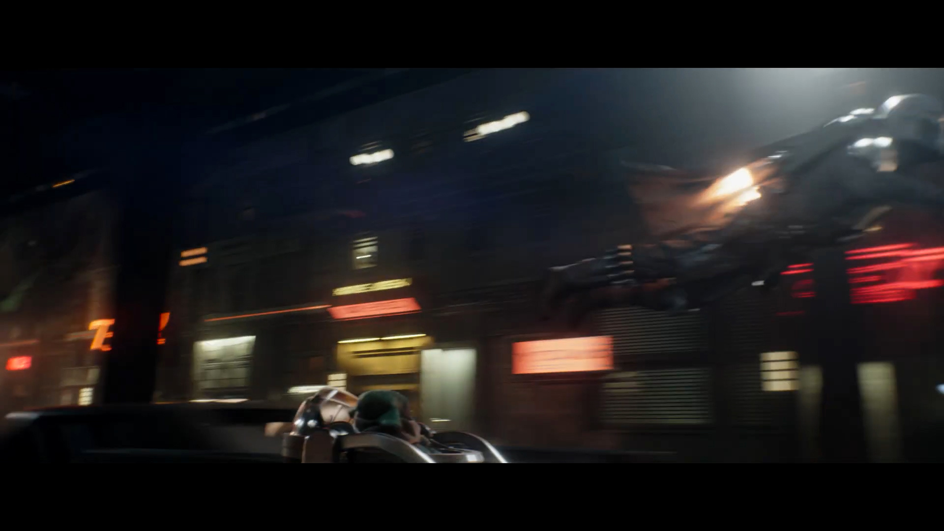 - Shot #84 - More of Mando flying through the seedy cityscape.