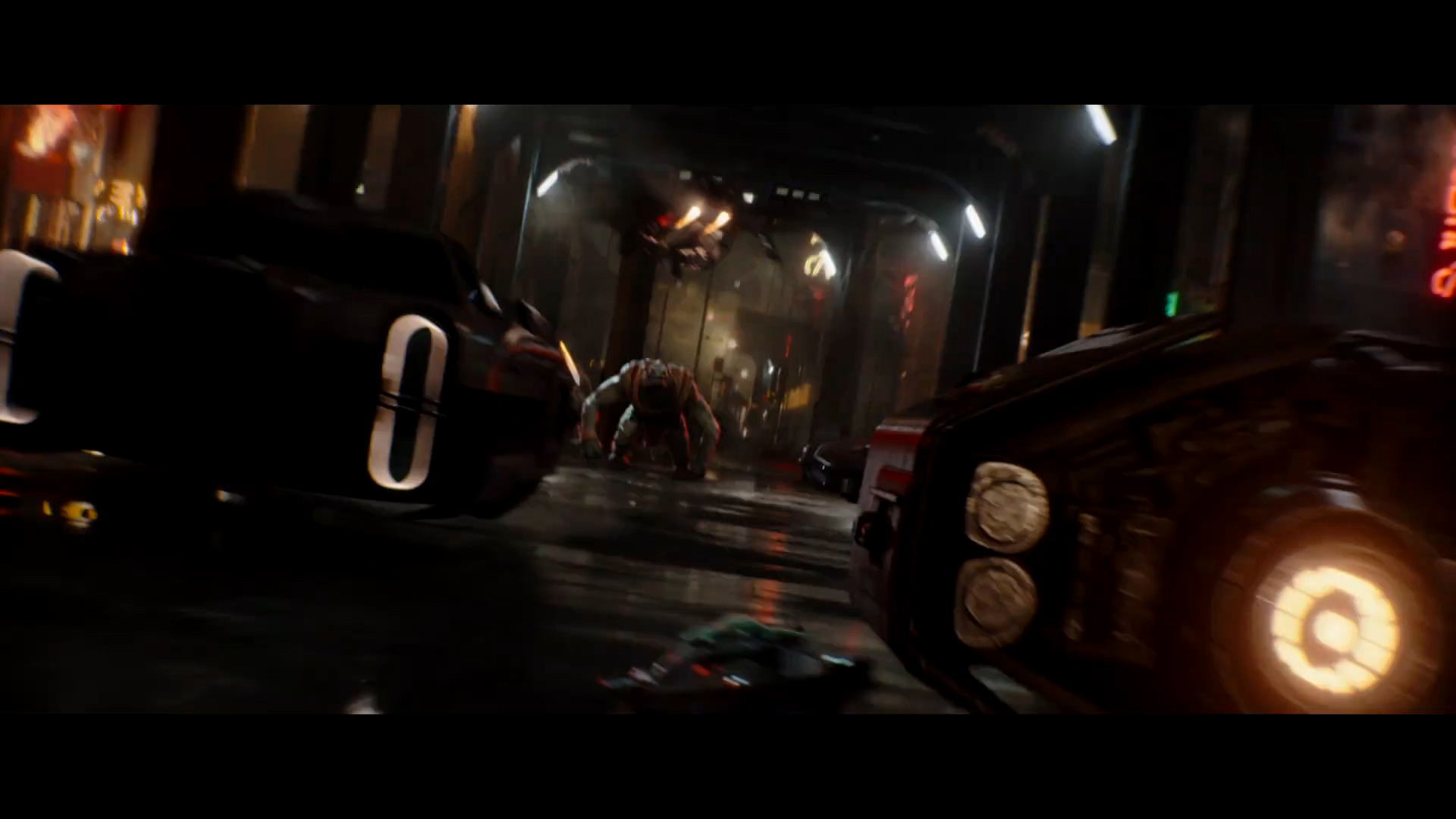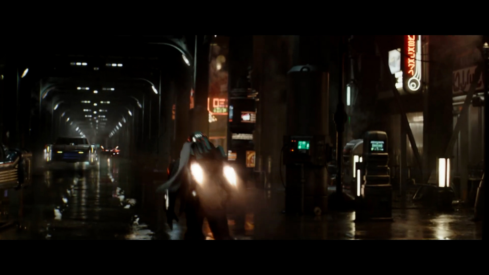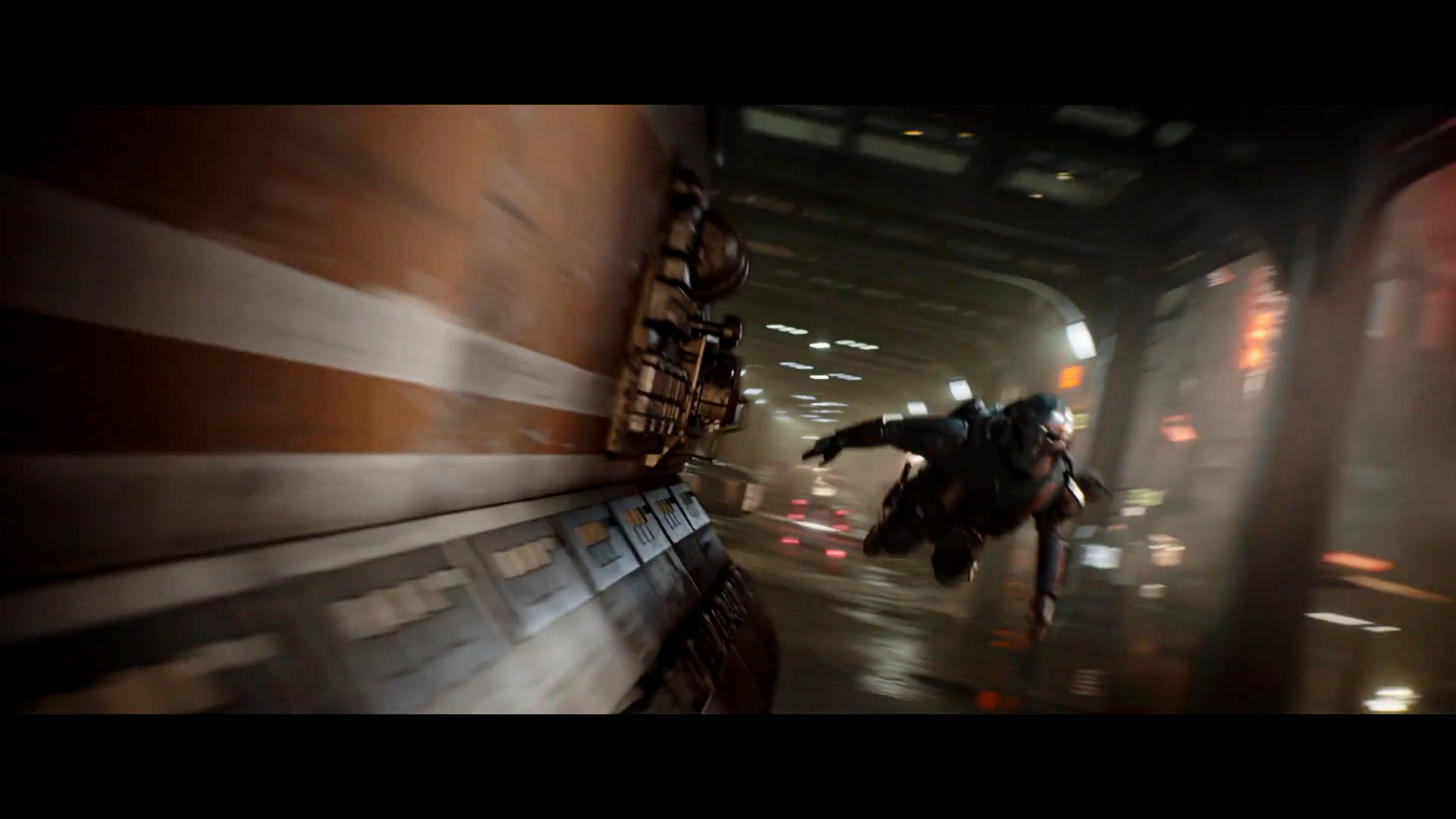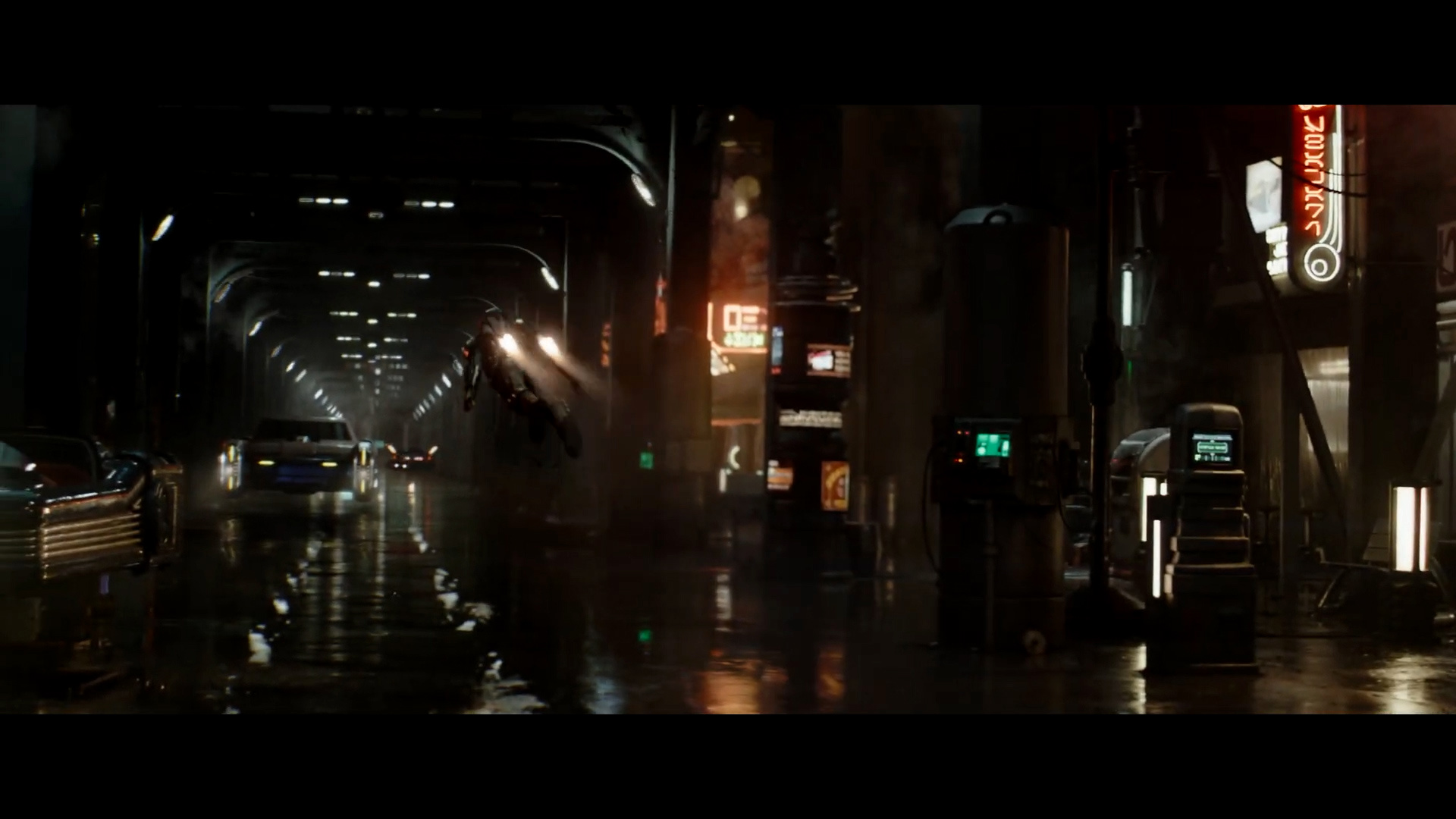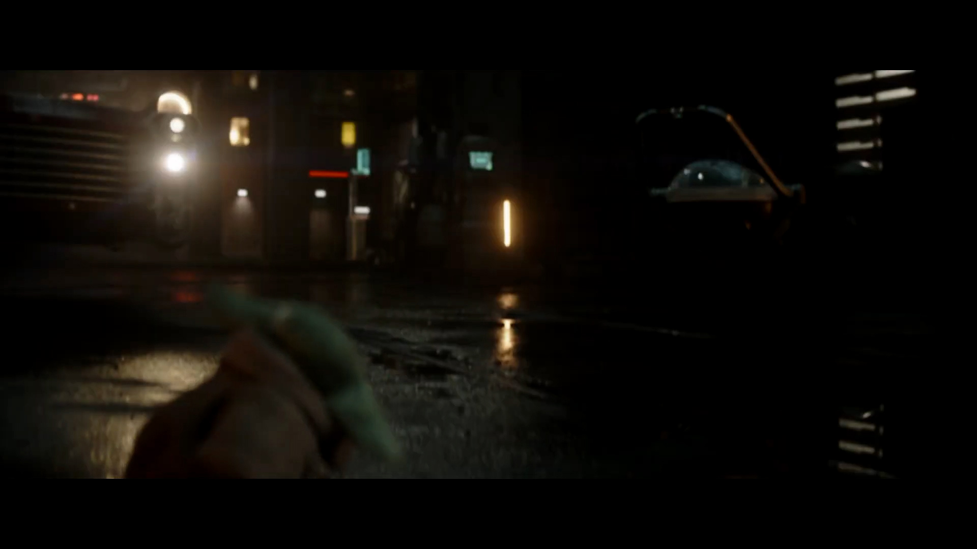 - Shot #84 - More of Mando flying through the seedy cityscape.