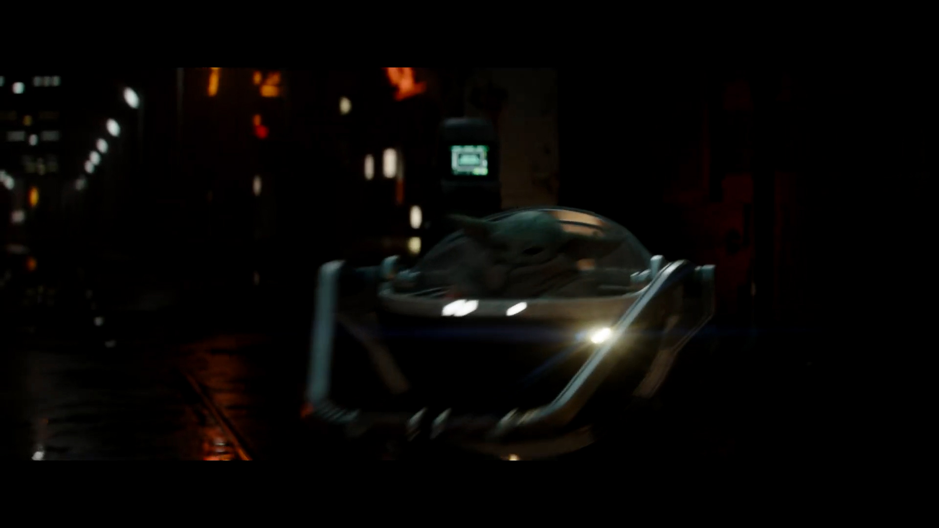 - Shot #78 - A slightly wider shot from the reverse as Grogu finishes spinning around in the pram and then lowers its handle and zooms toward the camera.